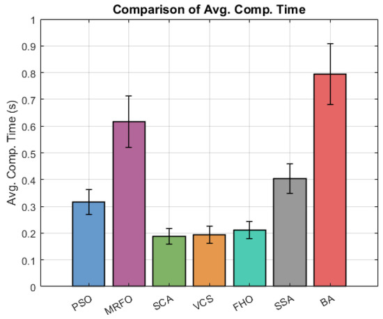 Although all compared metaheuristics (PSO, MRFO, SCA, VCS, SSA, BA) share the same fitness evaluation structure and thus belong to the same asymptotic complexity class, they differ notably in their parametrization and update overheads. Several methods rely on multiple control parameters—such as inertia weights, adaptive learning coefficients, or frequency terms—which increase the constant-factor cost per iteration. In contrast, FHO’s parameter-free structure eliminates this computational burden, leading to simpler iterations and reducing both execution time and deployment effort. A summary of Step-3 computational characteristics across algorithm families is provided in