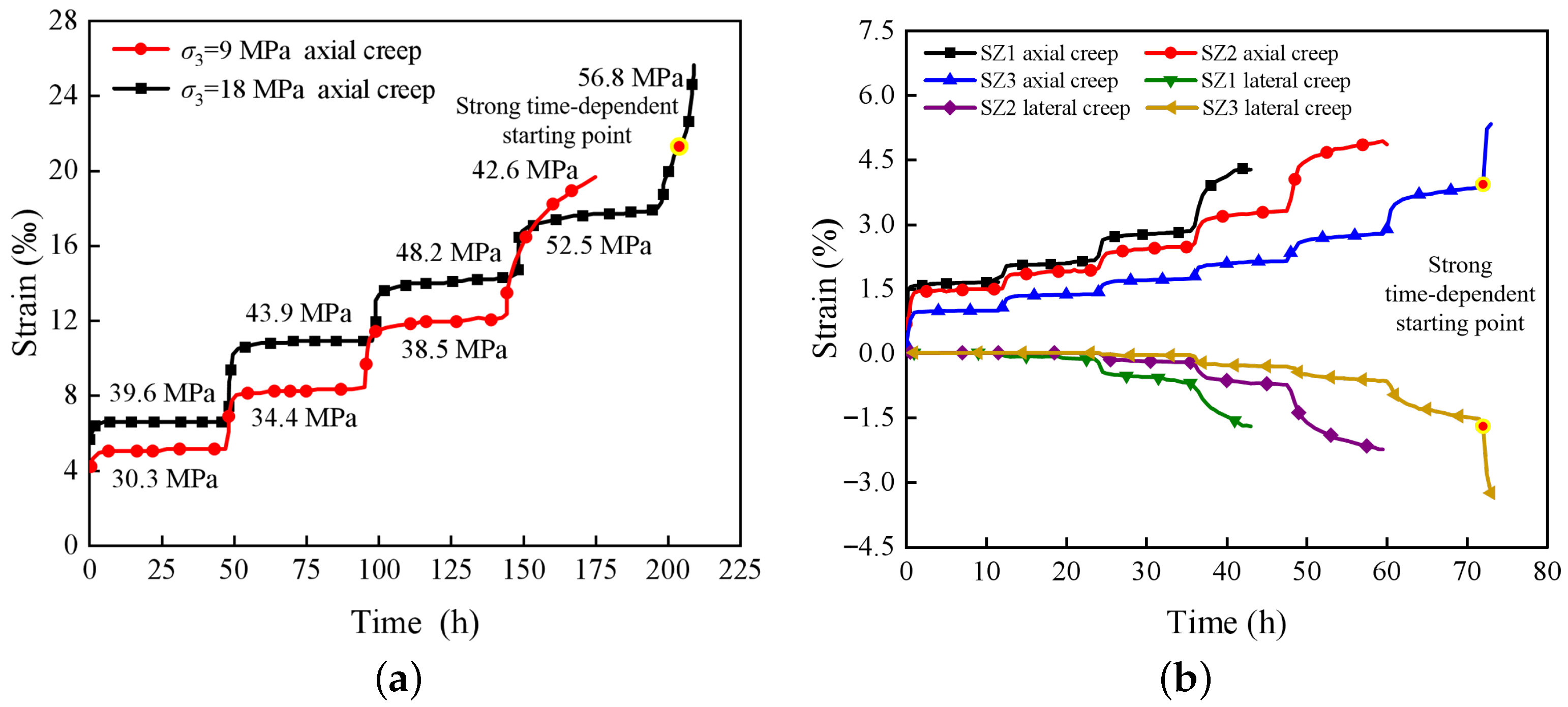 4.2. Validation of the Creep Model and Analysis of Strong Time-Dependent Behavior
