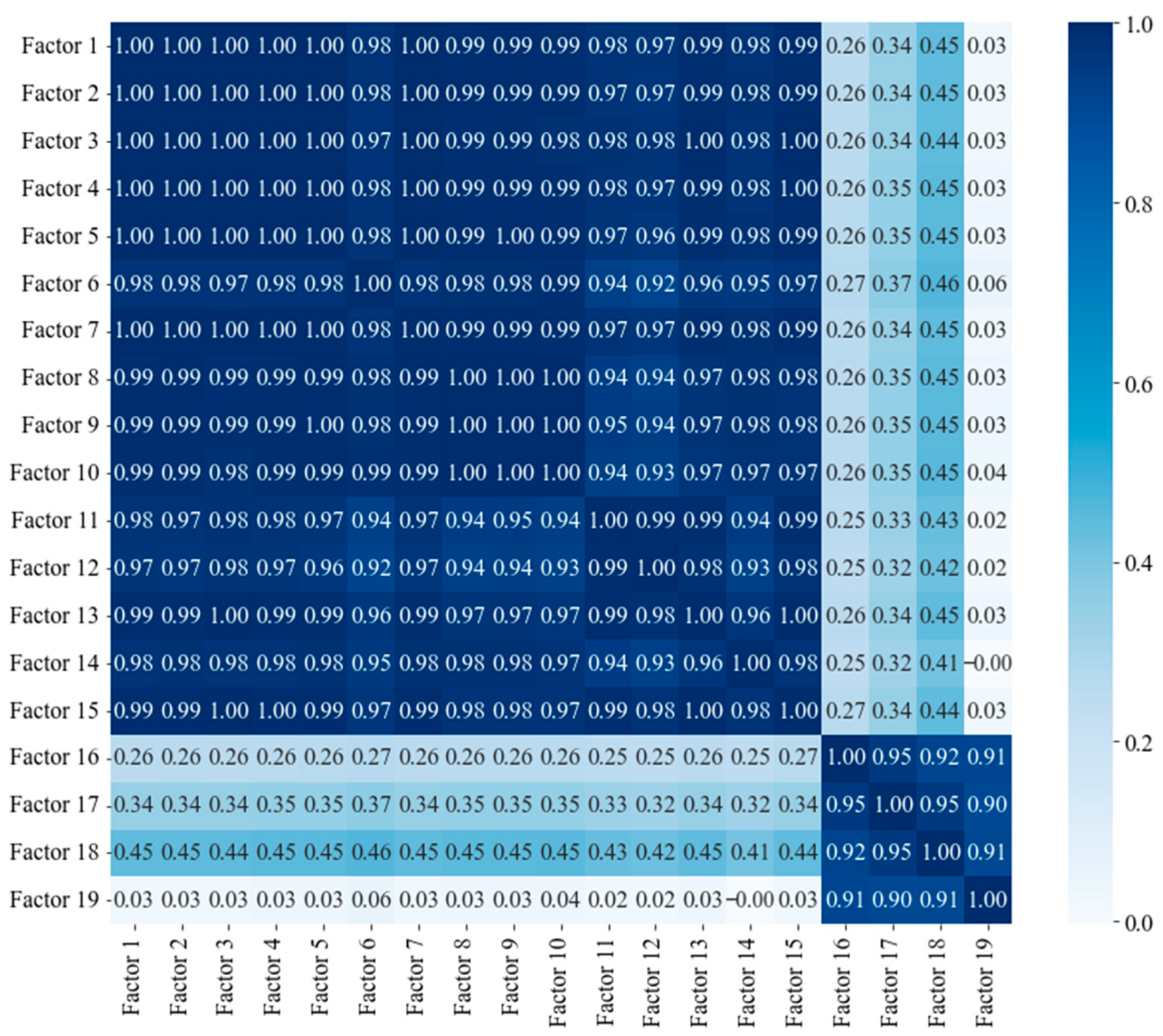 Table 2 lists descriptive statistics for 19 factors. Within the 19 factors, fuel (Factor 1) and repair materials (Factor 4) exhibit the highest averages among vehicle and maintenance costs, whereas ancillary repair expenses (Factor 6) are negligible. In personnel costs, operating personnel salaries (Factor 8) dominate at an average of 239.4, far exceeding management employee salaries (Factor 7), administrative staff salaries (Factor 9), and maintenance personnel salaries (Factor 10). Administrative and financial costs highlight substantial variation in operating expenses (Factor 11) and financial expenses (Factor 15), while tax expenses (Factor 13) and station rent (Factor 14) remain comparatively minor.