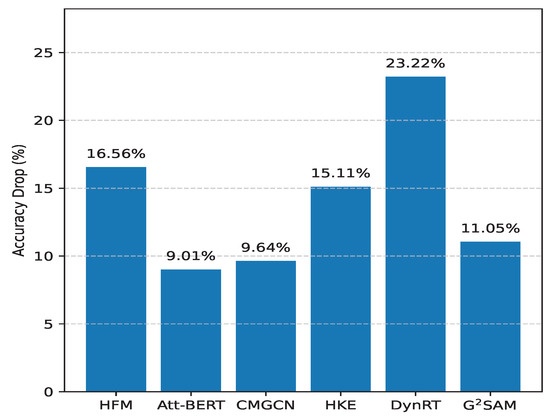 - Mainstream models often exploit superficial textual cues (e.g., emojis and hashtags) that are prevalent in noisy datasets. While prior works employ various fusion strategies, their architectures often fail to distinguish these cues from genuine semantic conflicts, inadvertently learning shortcuts that do not generalize to real-world scenarios. This fundamental weakness is exposed when such cues are removed, causing model performance to degrade significantly [10]. For example, as shown in Figure 1, traditional multi-modal models such as HFM [11], Att-BERT [12], CMGCN [13], HKE [14], DynRT [15], and G2SAM [16] perform significantly worse on the cleaned MMSD2.0 dataset [10], as the accuracy of the DynRT model drops by 23.22% from MMSD [11] to MMSD2.0.