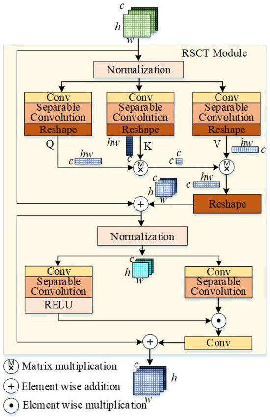 The primary innovation of the RSCT module lies in the reconstruction of the Q, K, and V matrices, which are replaced by the separable convolution.