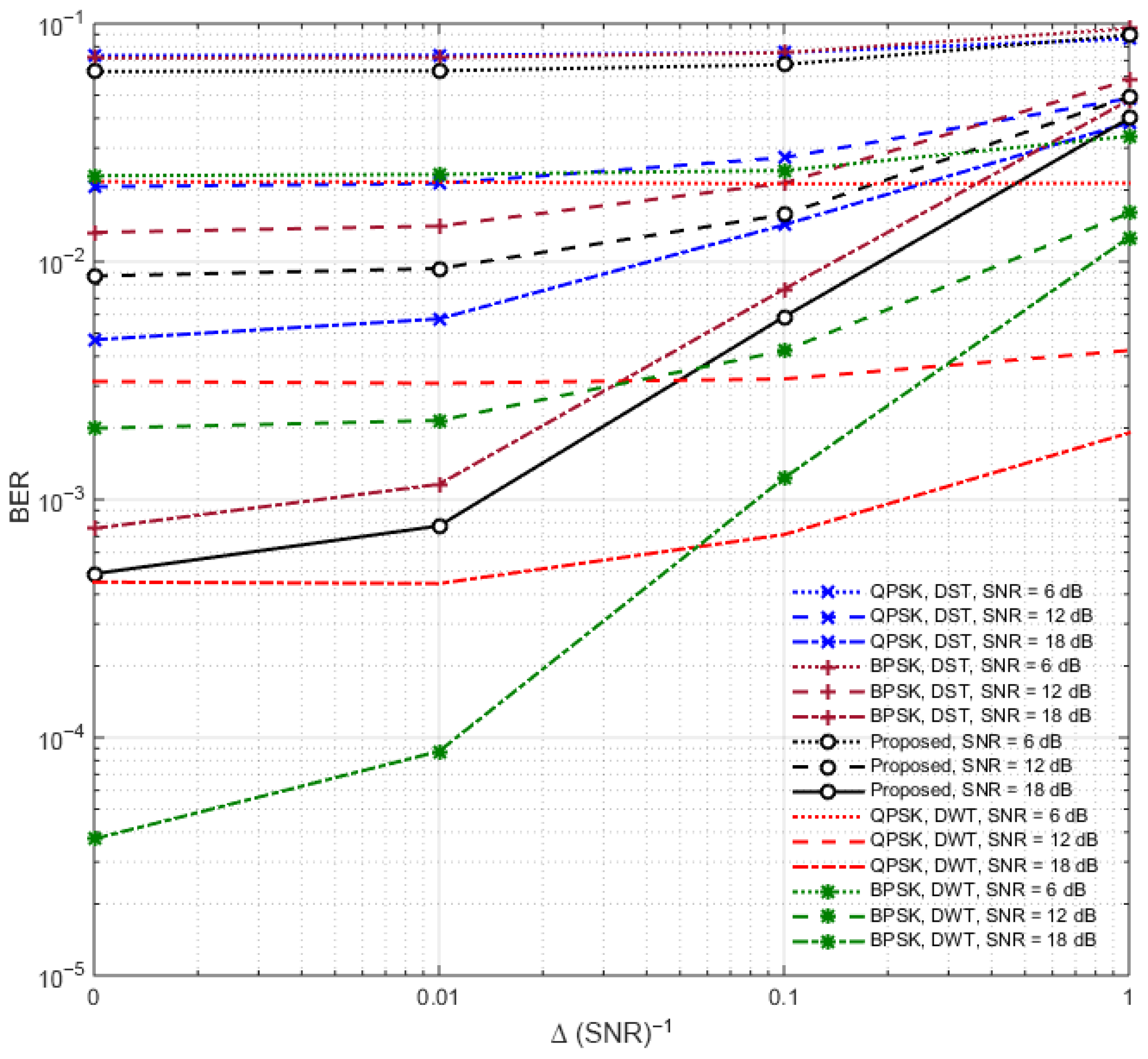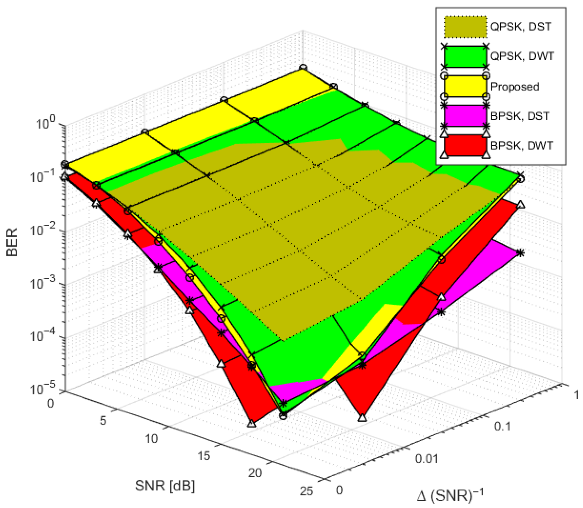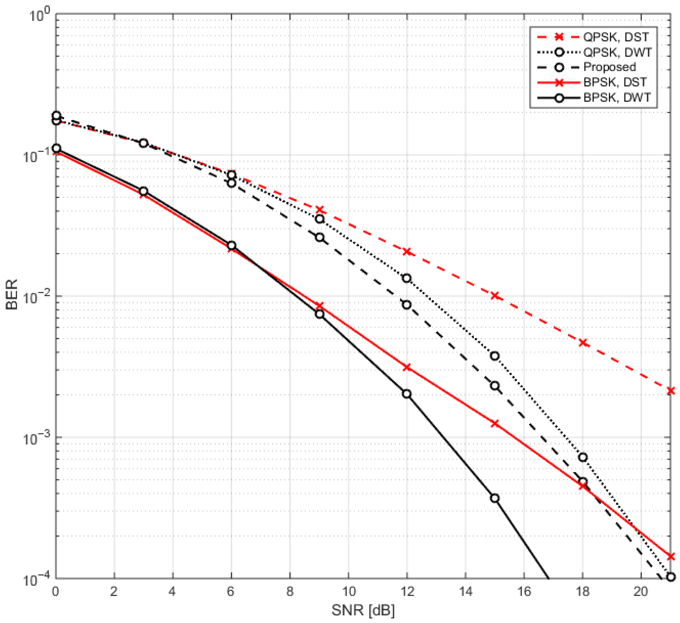 DWT + BPSK | 0.00020 | 0.00211 | 0.00191 | 0.19% |