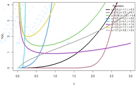 Various shapes are shown in the pdf, including symmetric, left-skewed, right-skewed, and reverse J-shaped forms, whereas the hazard function provides different forms, such as increasing, bathtub, J-shaped, and reverse J-shaped forms. This illustrates the flexibility of the distribution in modeling different forms of data.