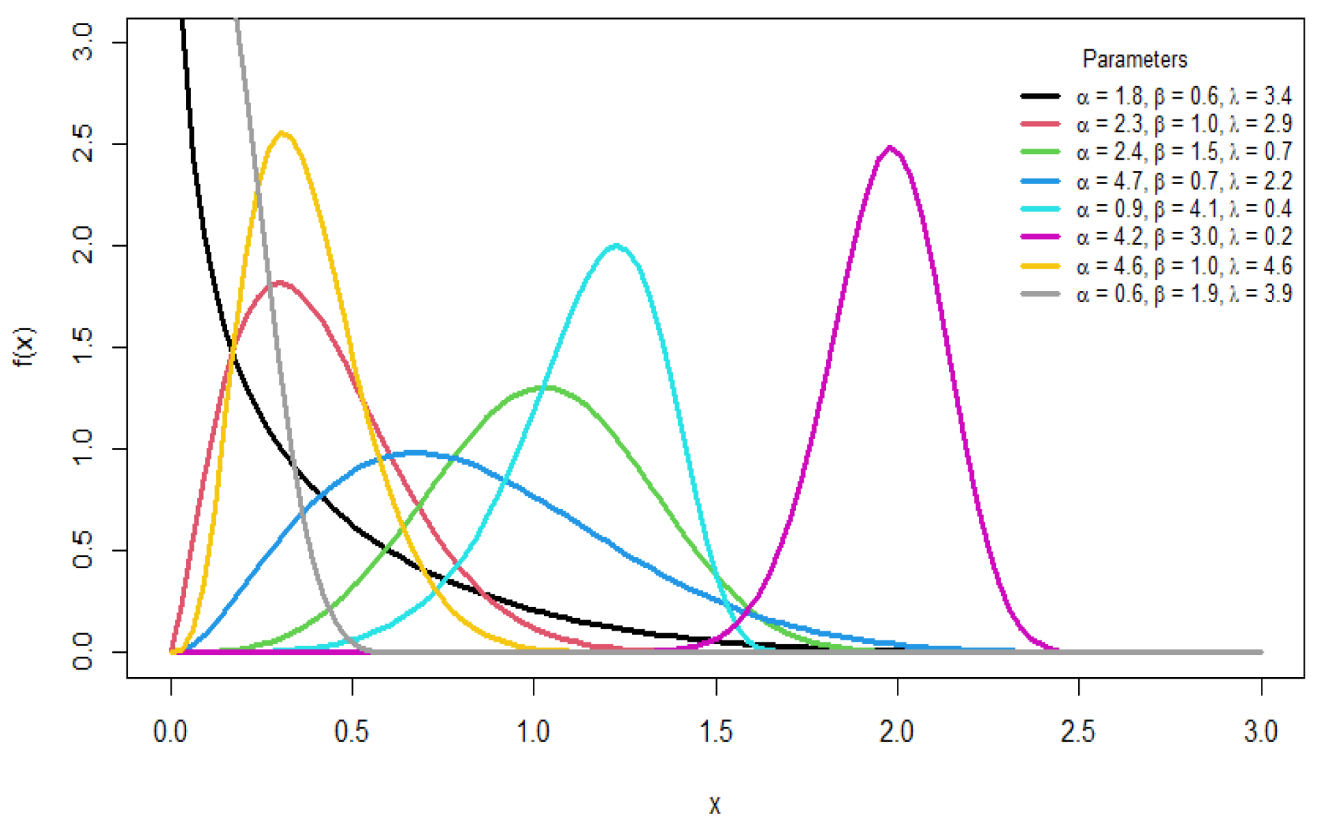 - Pinho, L.; Cordeiro, G.; Nobre, J. The gamma-exponentiated Weibull distribution. J. Stat. Theory Appl. 2012, 11, 379–395. [Google Scholar]
