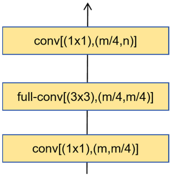 Each decoder consists of two 1 × 1 convolutions and one 3 × 3 full convolution, as shown in Figure 2. Each convolution layer takes three parameters as input, with Table 1 listing the values of m and n for each decoder layer, allowing the corresponding convolutional layer parameters to be derived.