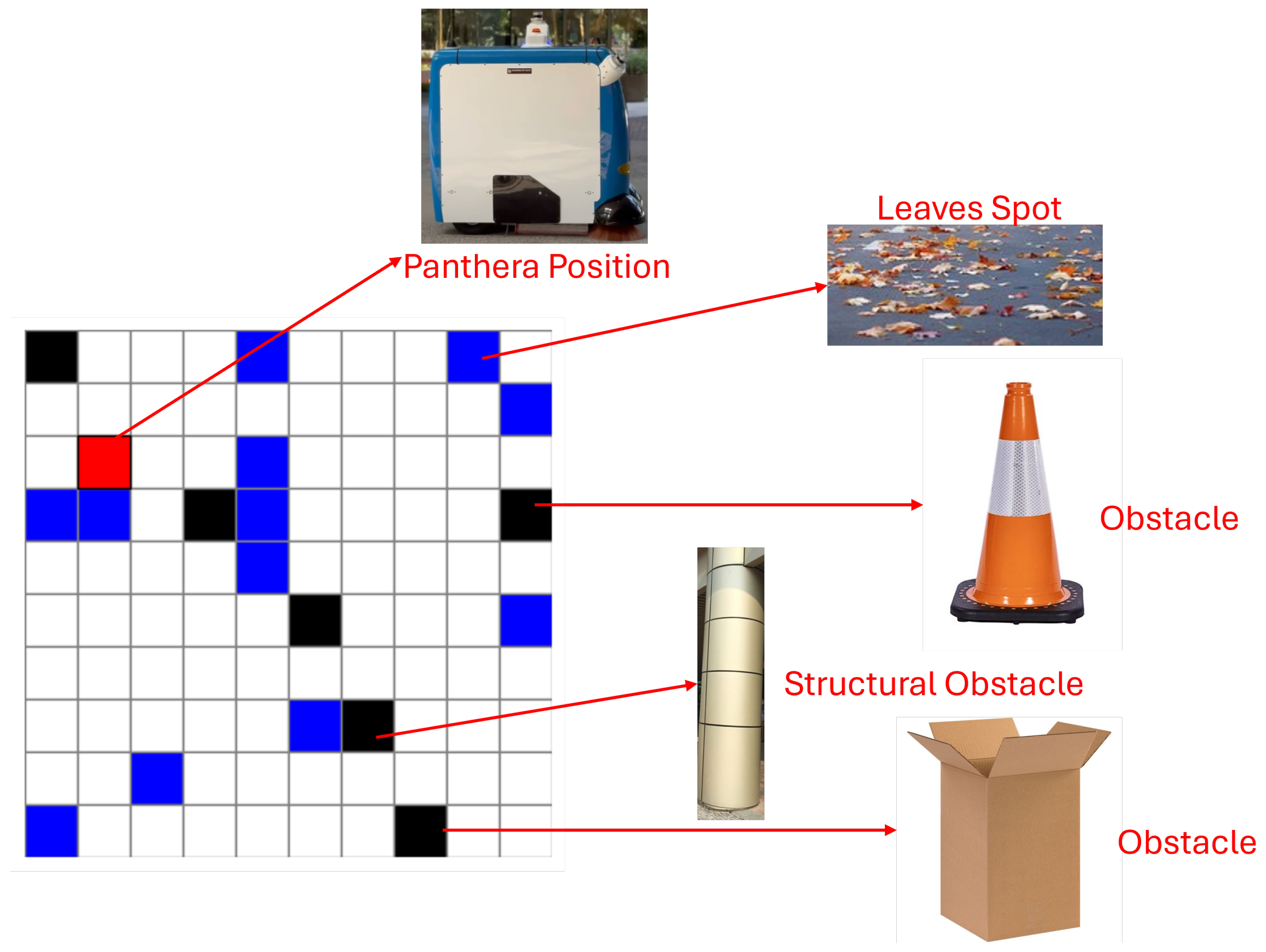 - Azcarate, R.F.G.; Jayadeep, A.; Zin, A.K.; Lee, J.W.S.; Muthugala, M.V.J.; Elara, M.R. Adaptive Outdoor Cleaning Robot with Real-Time Terrain Perception and Fuzzy Control. Mathematics 2025, 13, 2245. [Google Scholar] [CrossRef]