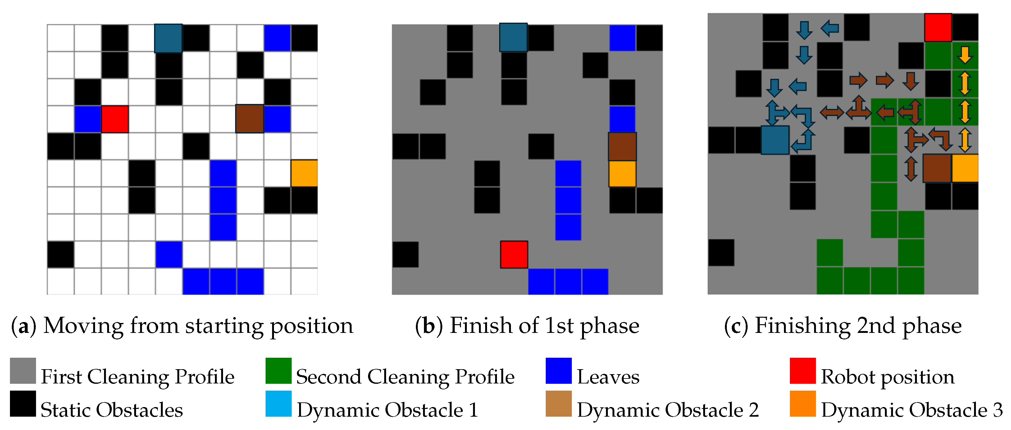 - Zelinsky, A.; Jarvis, R.A.; Byrne, J.; Yuta, S. Planning Paths of Complete Coverage of an Unstructured Environment by a Mobile Robot. In Proceedings of the International Conference on Advanced Robotics, Atlanta, GA, USA, 2–6 May 1993; pp. 533–538. [Google Scholar]