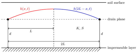 The mathematical modeling of soil drainage fundamentally relies on Boussinesq equation [2], which governs variably saturated water flow in porous media and provides a unified framework for describing drainage. Theoretically, the connection between heat conduction and water flow, as outlined in Carslaw and Jaeger’s classic work [3], have provided the mathematical basis for many solution techniques applied to drainage modeling.