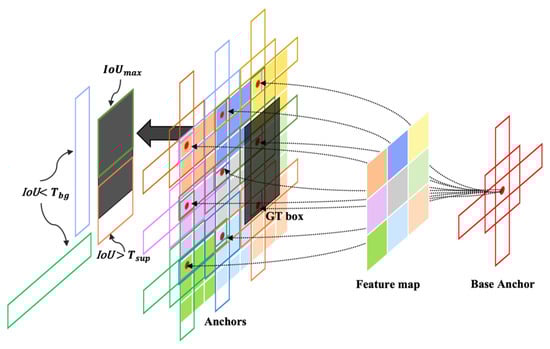 where indicates the anchor box that obtains the maximum IoU with ground truth box s, and a contains anchor box meeting the positive sample threshold and meeting the negative sample threshold . Following the design of Faster R-CNN, we set and , and the number of negative samples is set to three times the number of target boxes, with negative samples being randomly selected to maintain the diversity and balance between positive and negative samples during training. To clearly illustrate the calculation process of , Algorithm 2 presents its pseudocode.