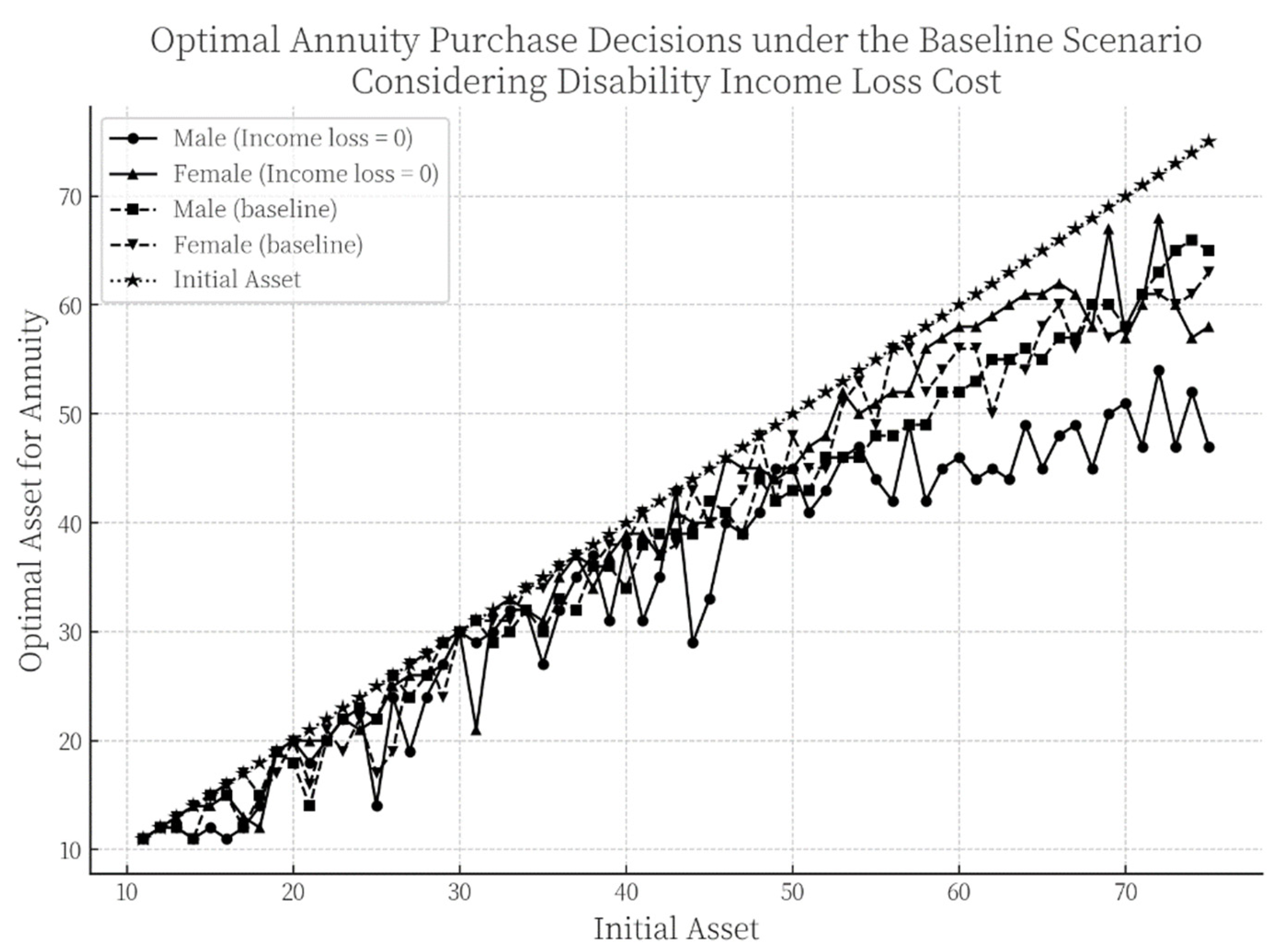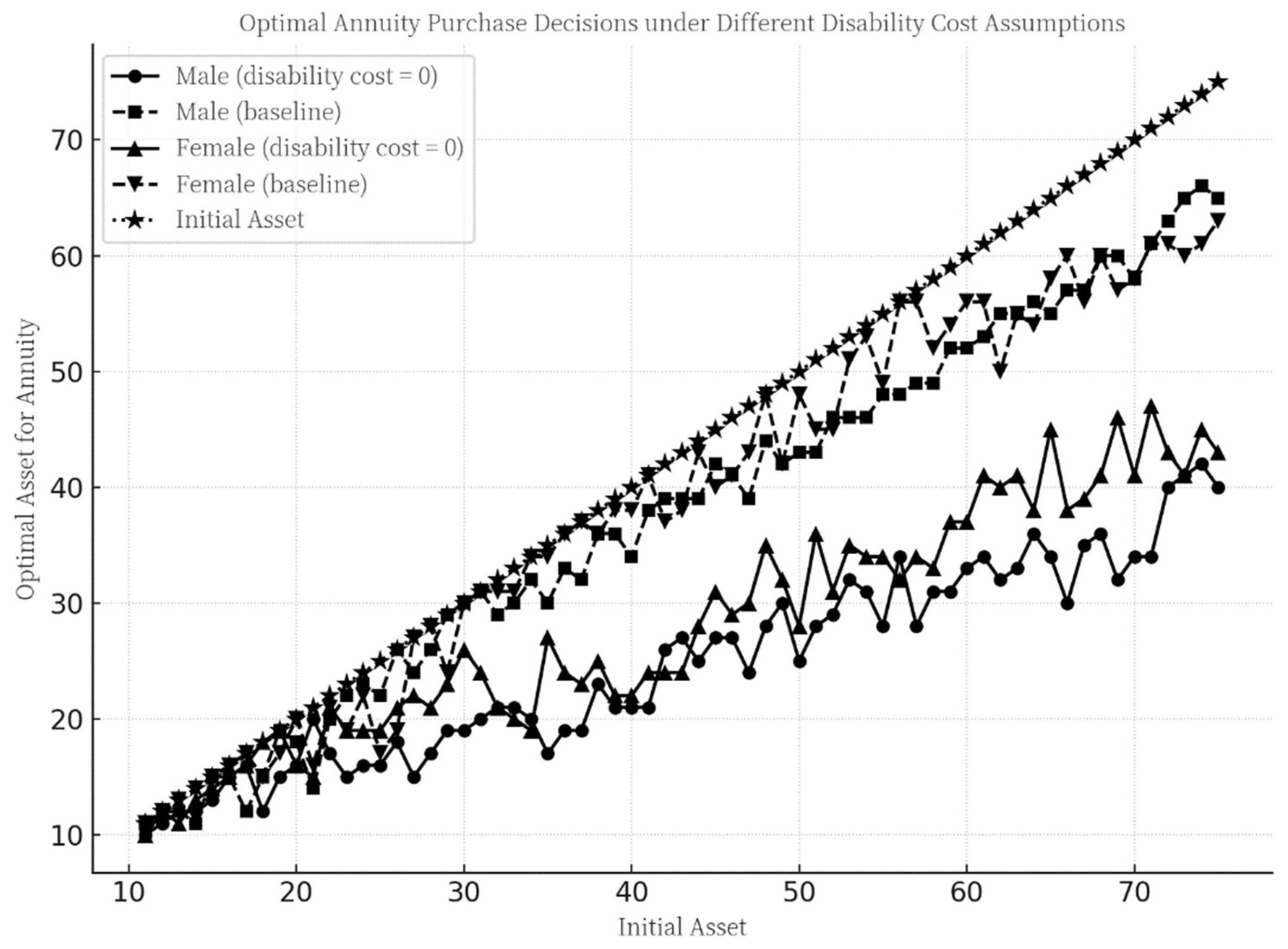4.1.3. The Impact of Disability-Related Income Loss on Annuity Purchase Decisions Under the Baseline Scenario