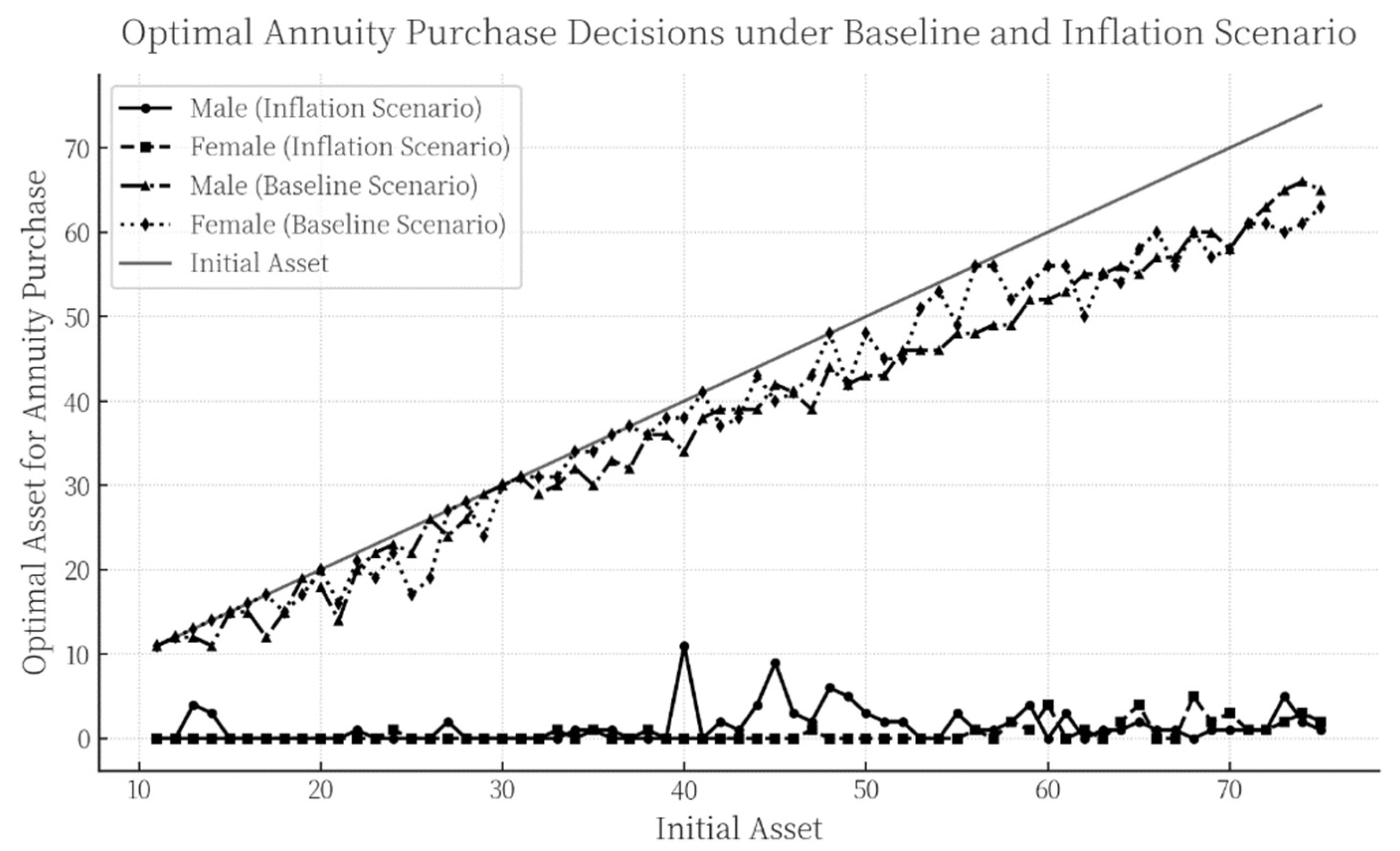 4.2.1. Annuity Purchase Decisions Under a Dual-Inflation Scenario