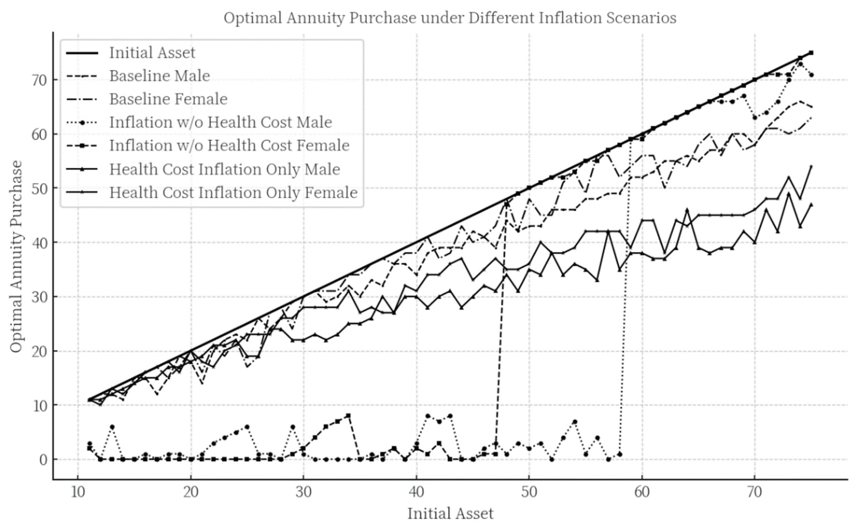 4.2.2. Optimal Annuity Purchase Decisions Under a Single-Inflation Scenario