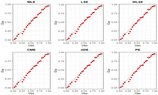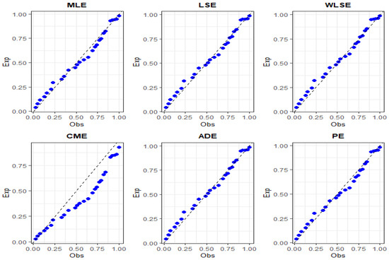 Graphs of P-P plots over estimation methods for dataset II.