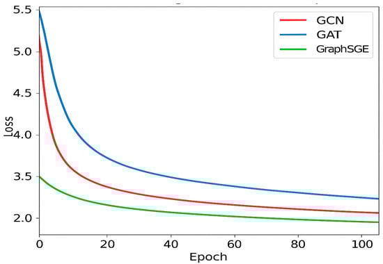 Model convergence behavior is visualized in Figure 2, which shows loss curves across epochs for all three models. GAT converges faster and to a lower loss value than GCNs and GraphSAGE on both datasets, indicating better optimization dynamics.