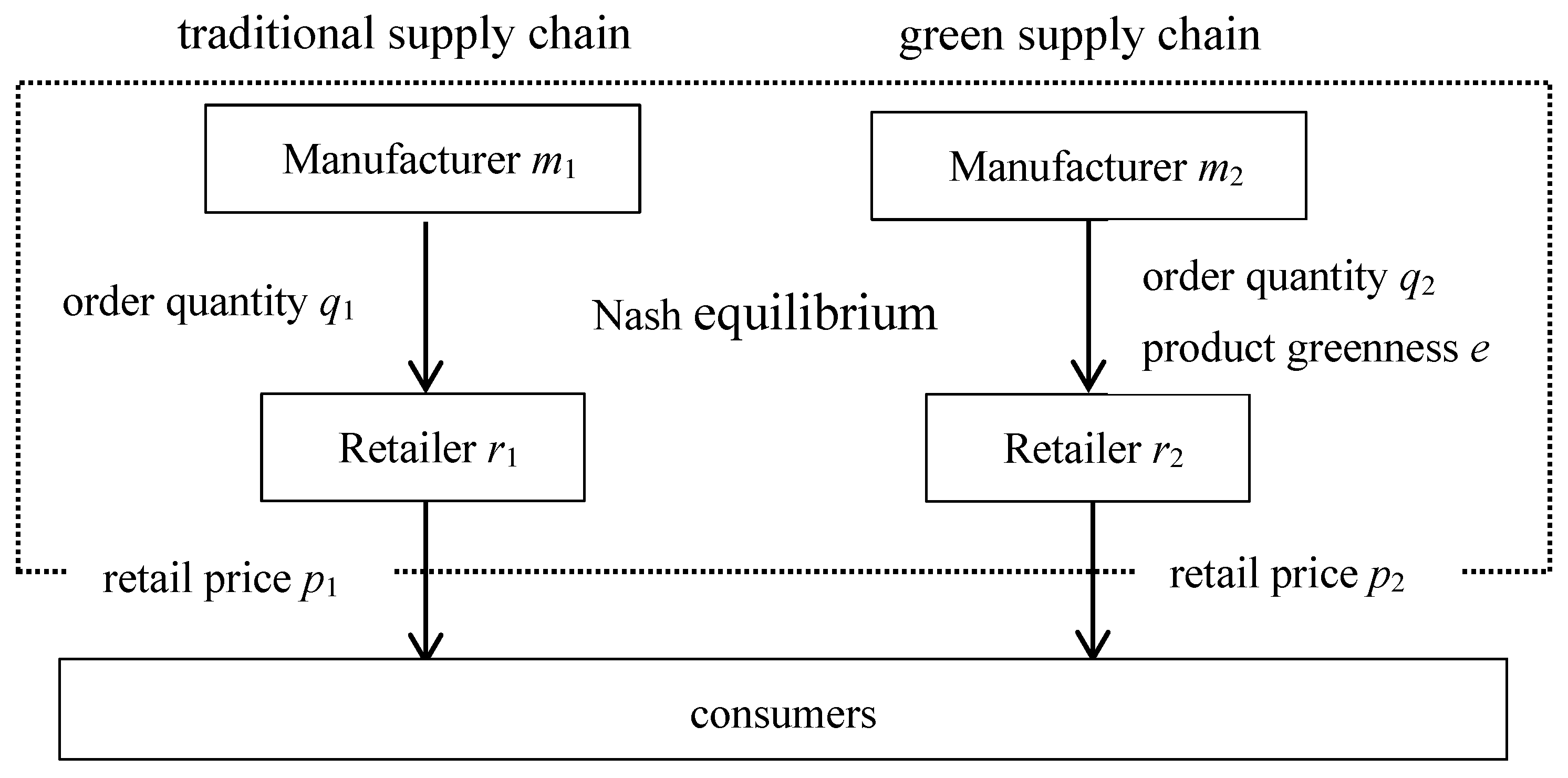 - Liu, H.Y.; Ji, S.F. Product selection and pricing policy of competitive supply chains considering consumers’ green preference. Chin. J. Manag. 2017, 14, 451–458. [Google Scholar] [CrossRef]
