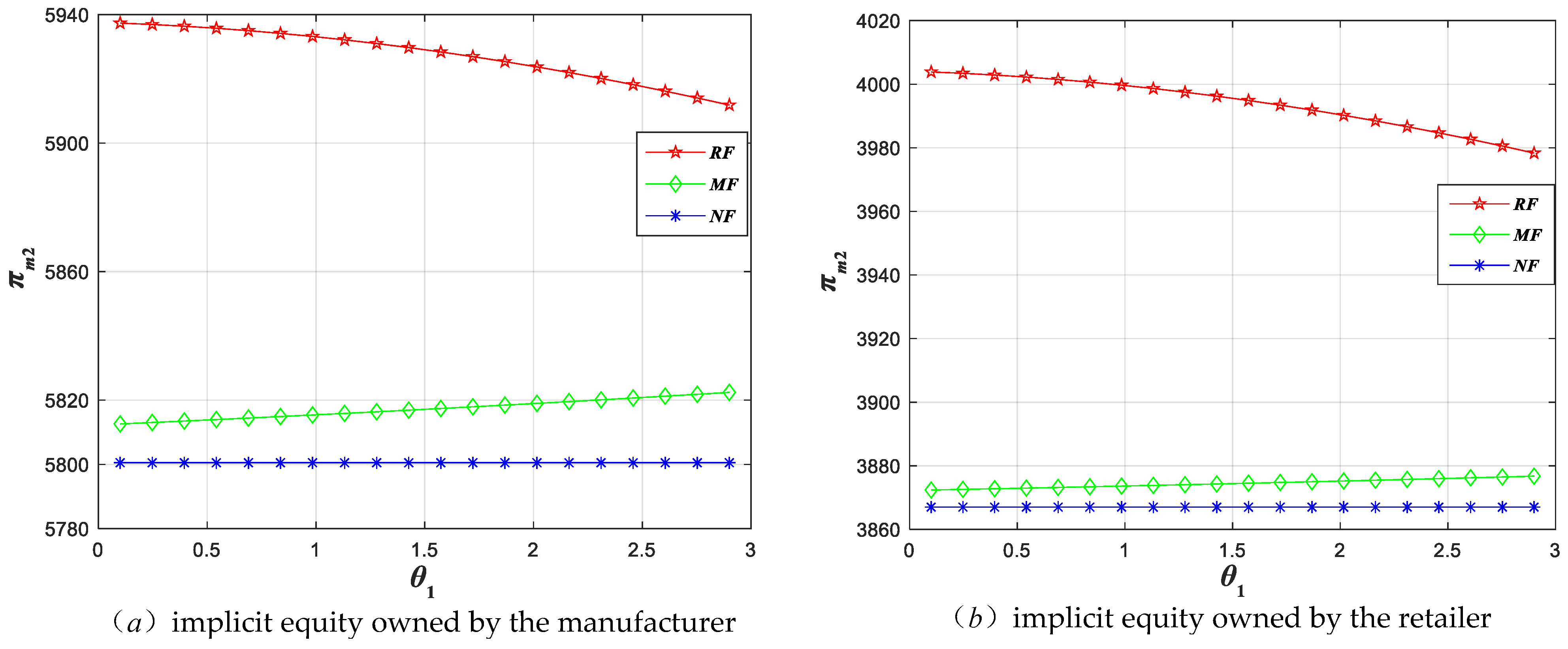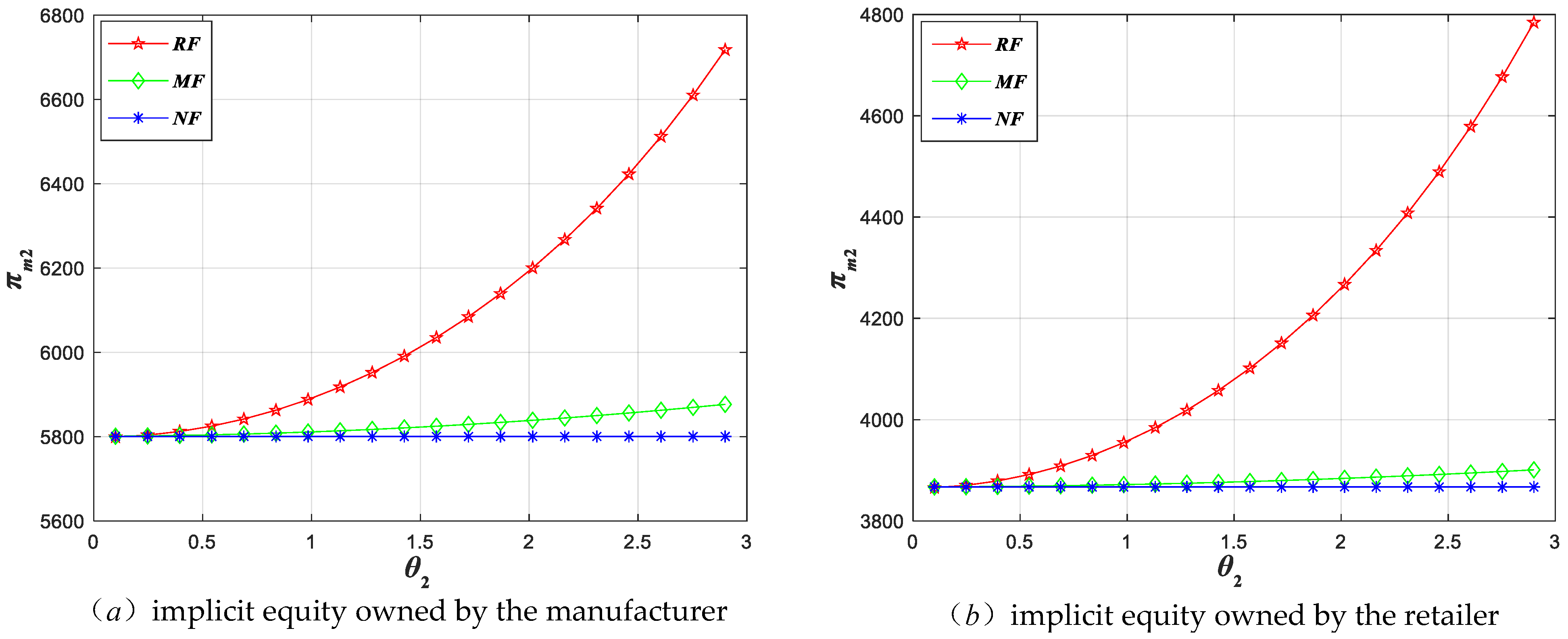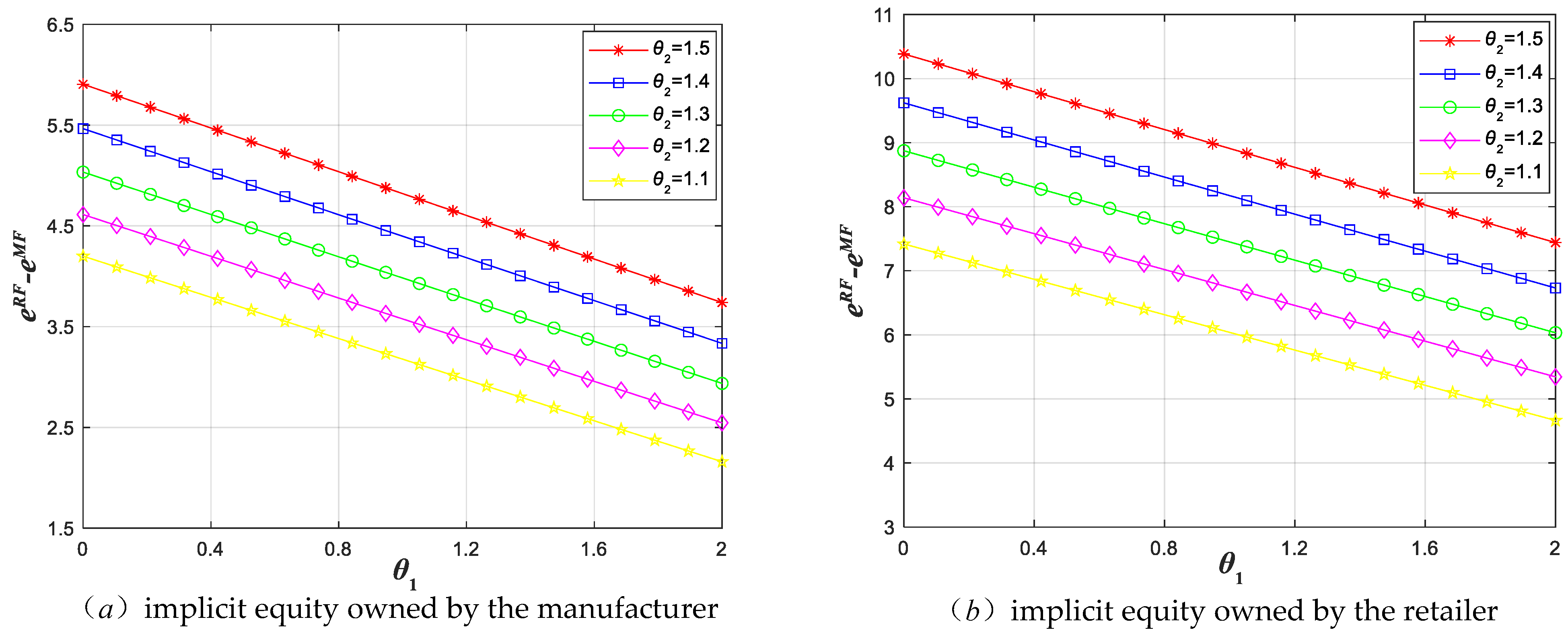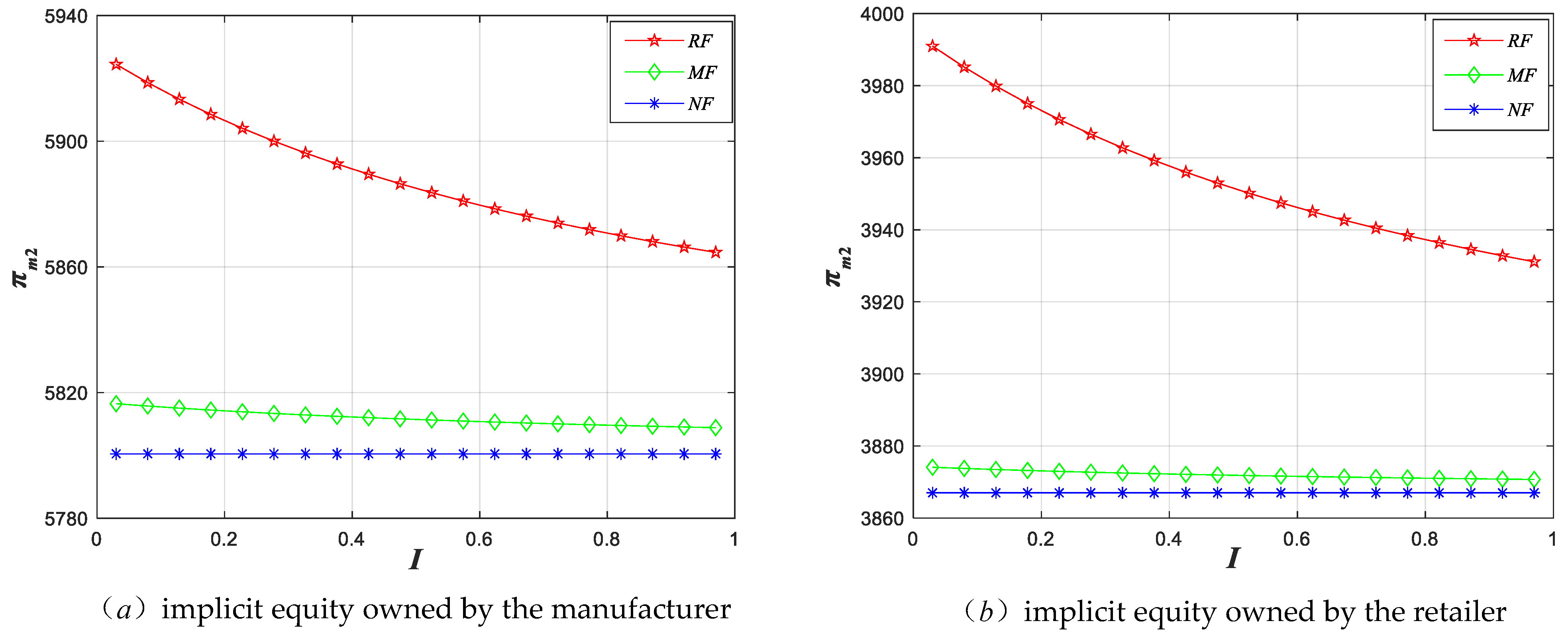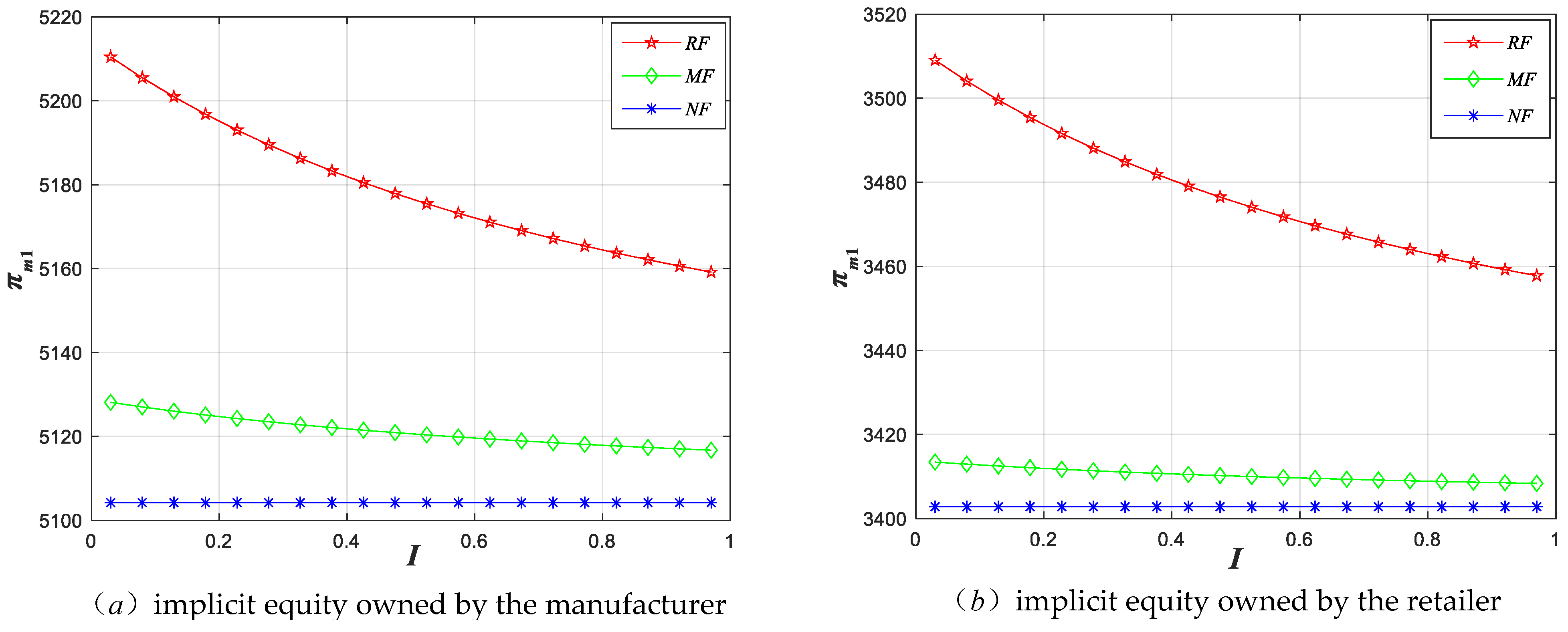 4.2. Green Supply Chain Financing Decision Model Based on Inter-Chain Competition and Implicit Equity Considerations Under the Manufacturer Financing Model