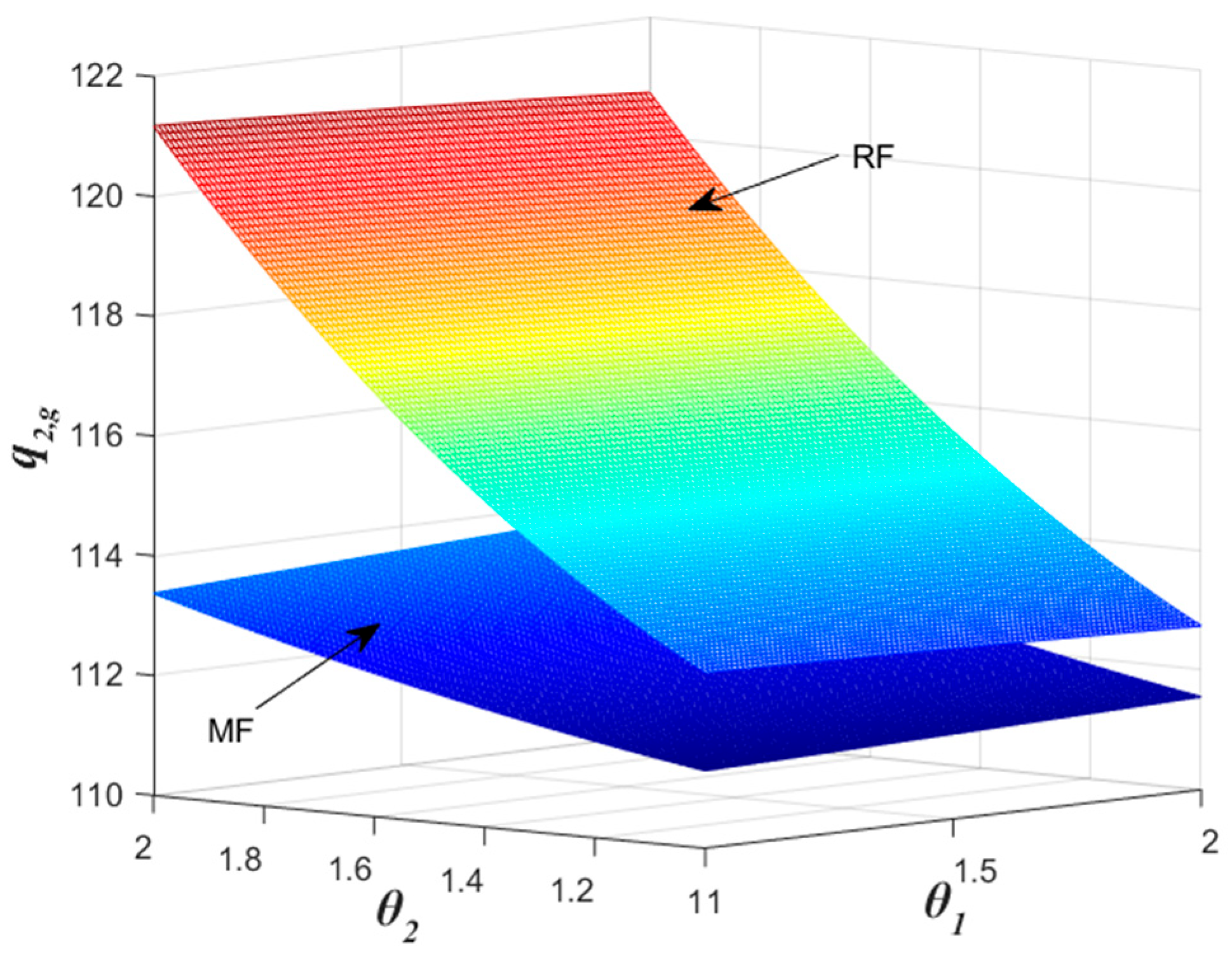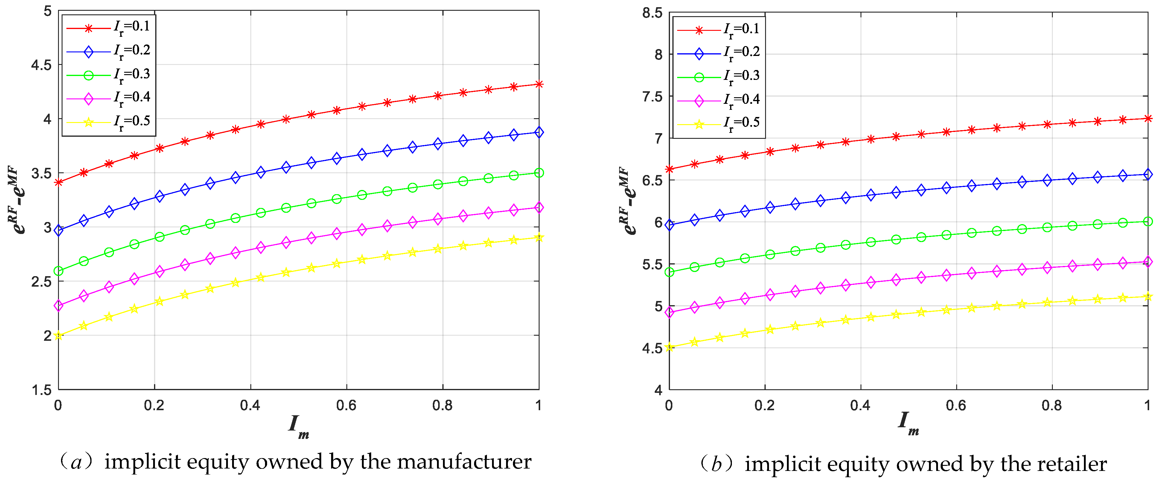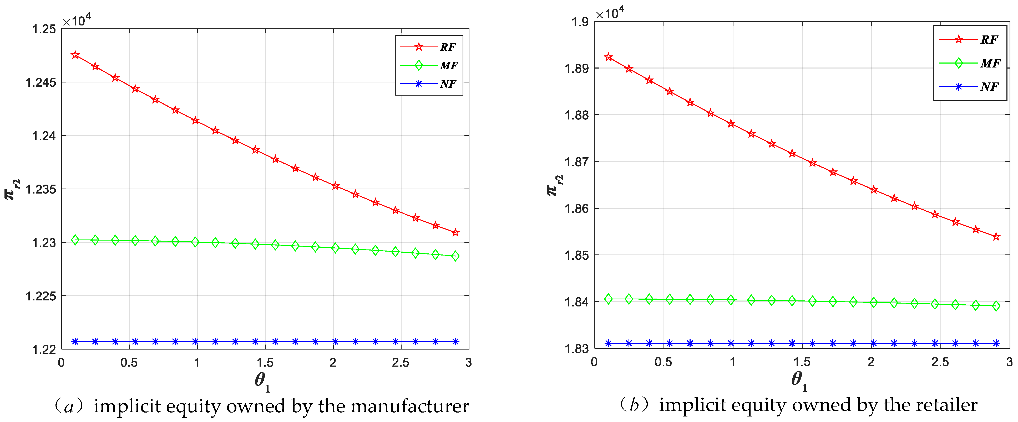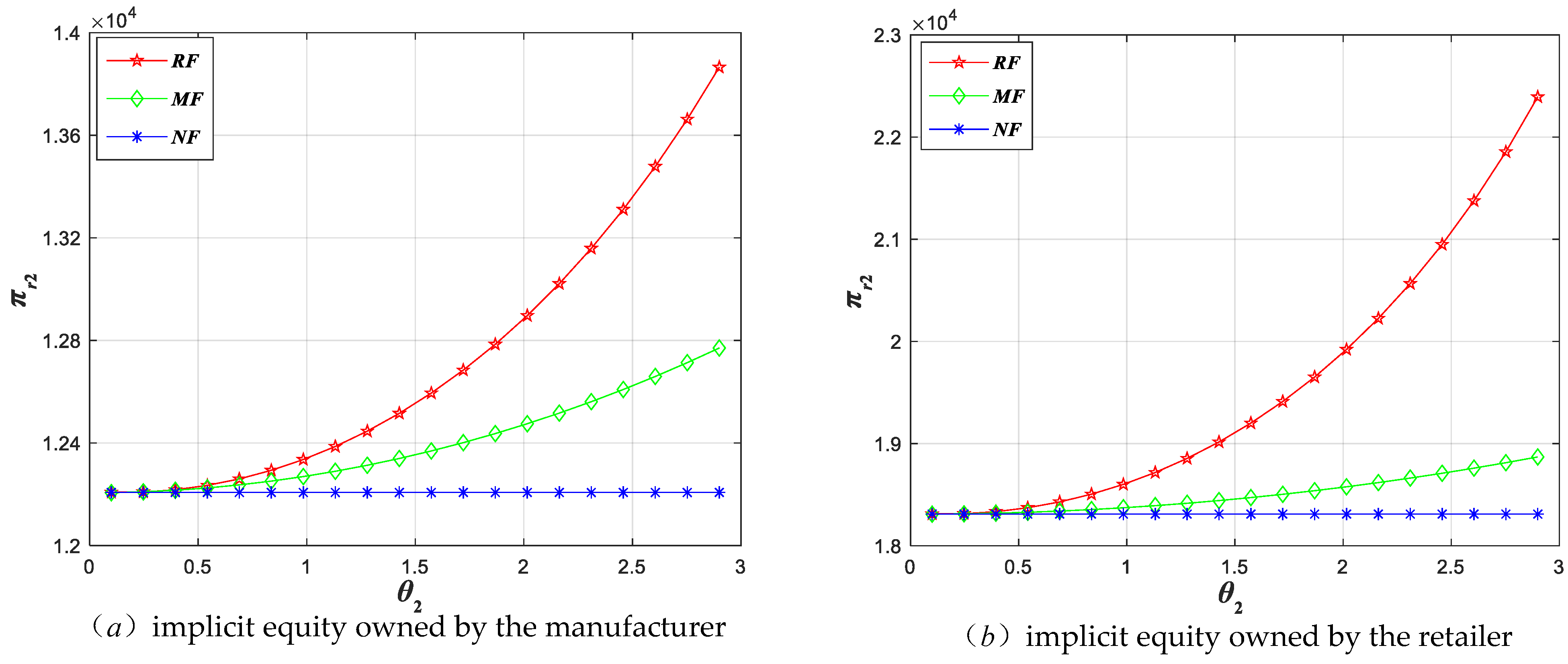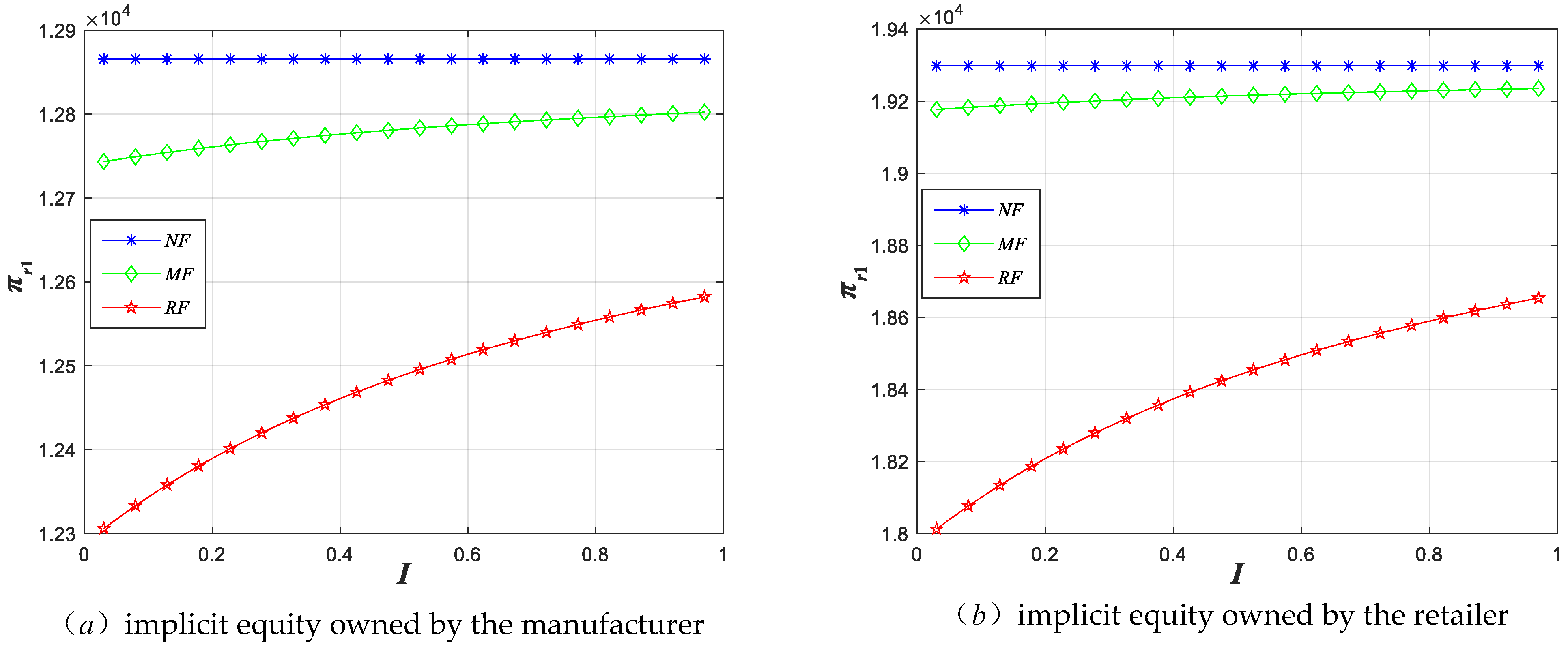 4.2. Green Supply Chain Financing Decision Model Based on Inter-Chain Competition and Implicit Equity Considerations Under the Manufacturer Financing Model