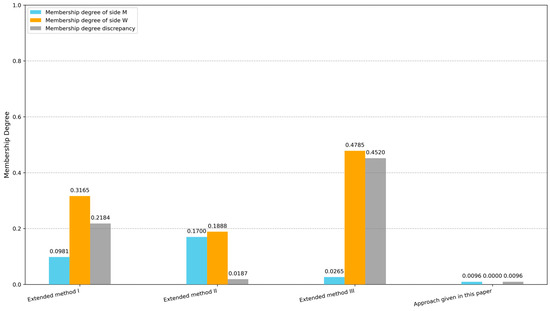 Likewise, let be the utility value obtained by of side W when matching with of side M under incomplete Fermatean fuzzy evaluation information, which can be calculated by