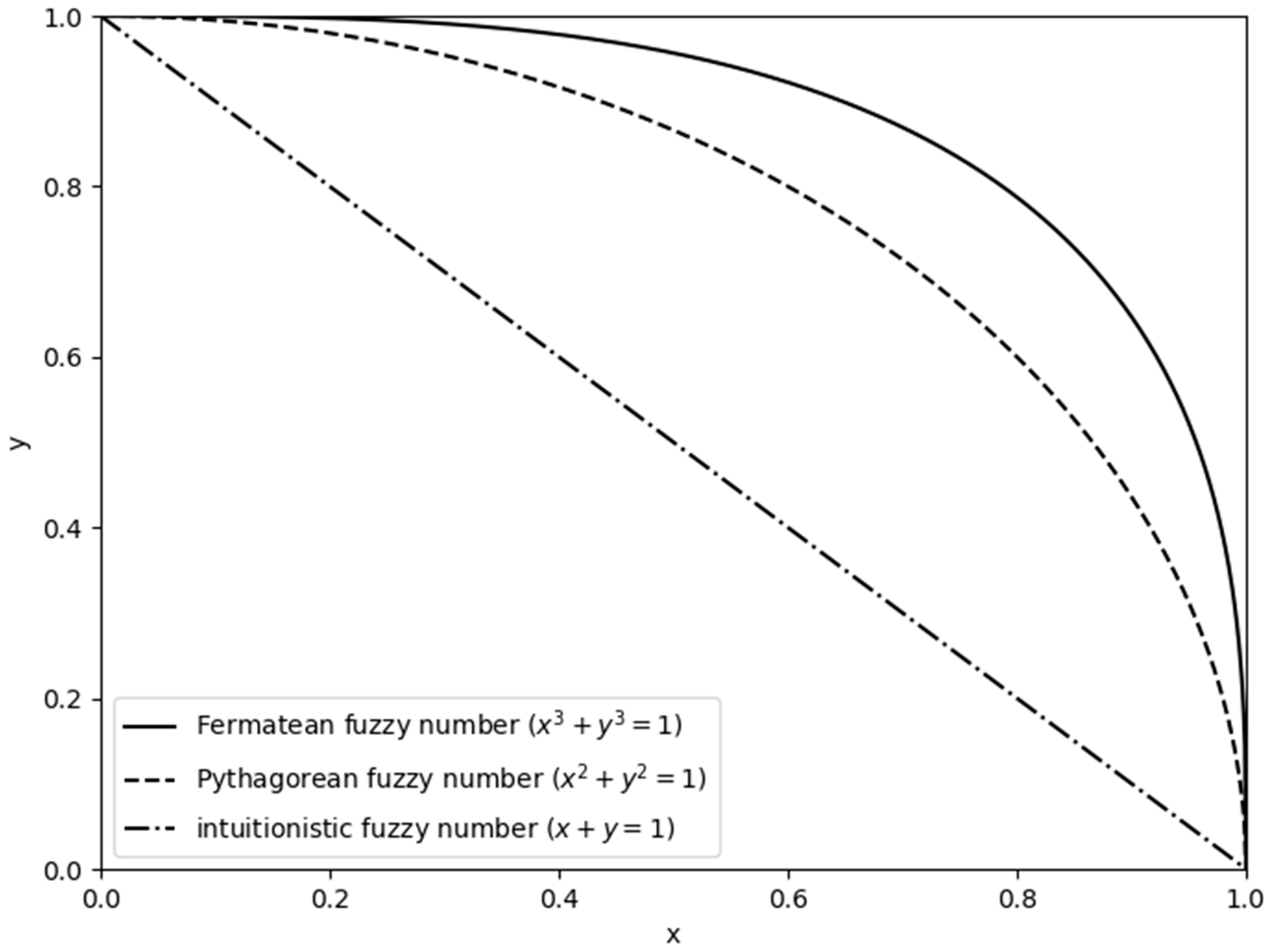 Figure 1 illustrates the range of the Fermatean fuzzy number (FFN), Pythagorean fuzzy number (PFN), and intuitionistic fuzzy number (IFN).