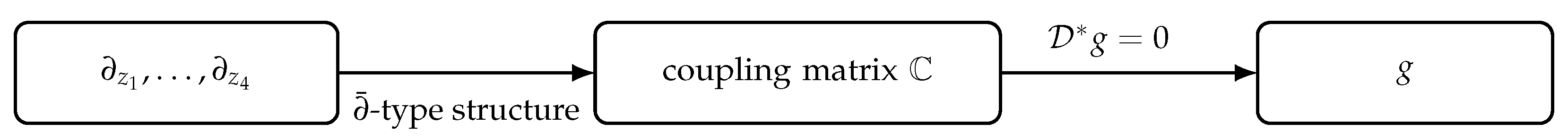 explicitly; all subsequent references use these labels. This parallels the classical equivalence between holomorphicity and the CR equations, but now in a four-component, algebra-coupled setting. Dirac-type operators encode Cauchy–Riemann structures and connect interior equations to boundary identities through Stokes’ theorem. In a commutative complex algebra model of , written , the coupling pattern is the analytic footprint of the multiplication. A Dirac-type pair intrinsic to yields a coupled CR system, a canonical first derivative, and a boundary identity.