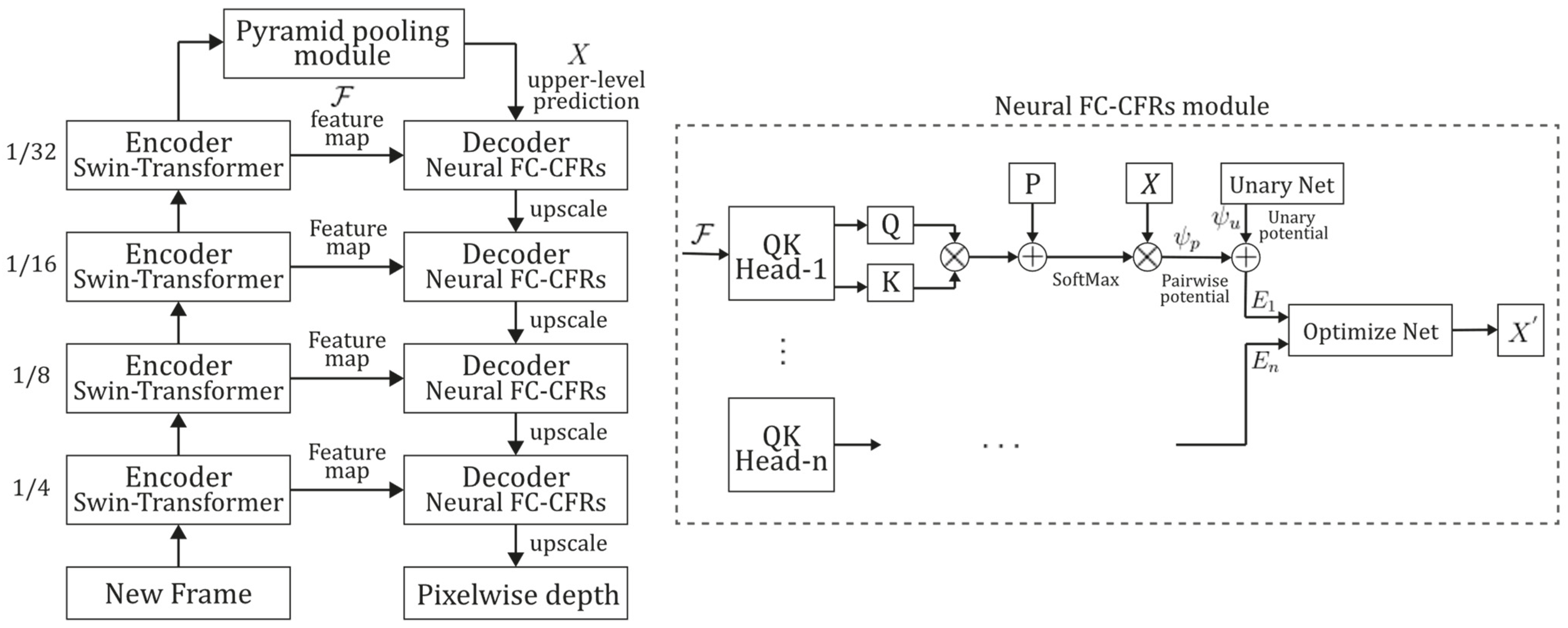 - Yuan, W.; Gu, X.; Dai, Z.; Zhu, S.; Tan, P. Neural Window Fully-connected CRFs for Monocular Depth Estimation. In Proceedings of the 2022 IEEE/CVF Conference on Computer Vision and Pattern Recognition (CVPR), New Orleans, LA, USA, 18–24 June 2022; pp. 3906–3915. [Google Scholar] [CrossRef]