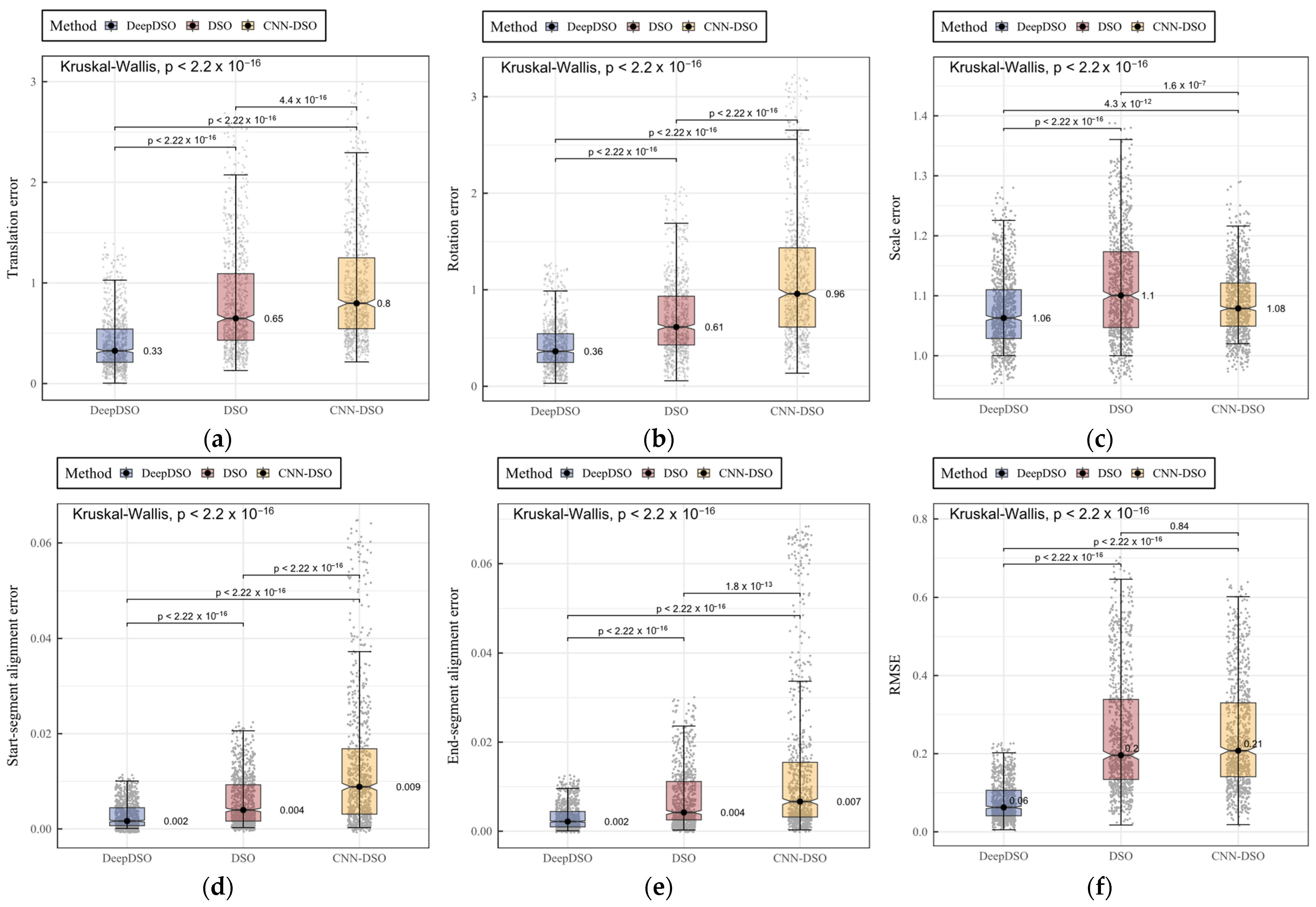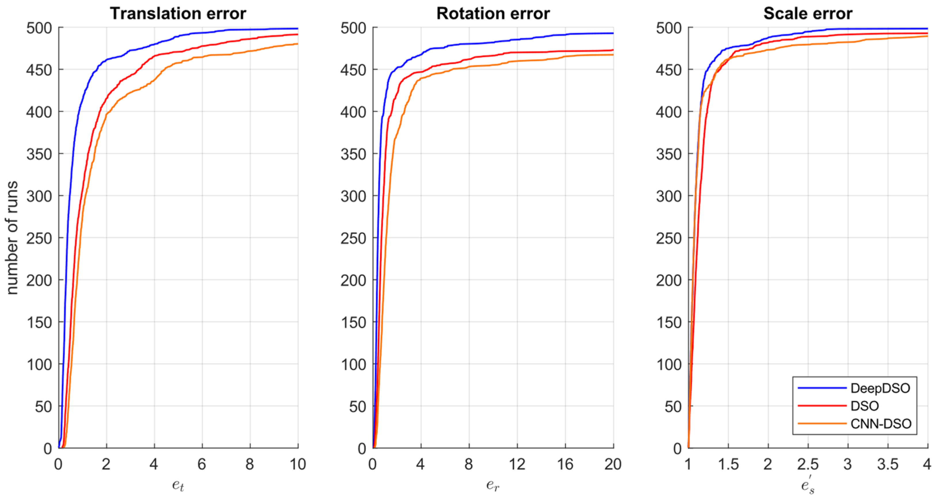 - Translation, rotation and scale error: From these alignments, the accumulated drift was computed as enabling the extraction of translation, rotation and scale error components across the complete trajectory.