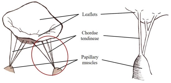 - Chen, S.; Sari, C.R.; Gao, H.; Lei, Y.; Segers, P.; De Beule, M.; Wang, G.; Ma, X. Mechanical and Morphometric Study of Mitral Valve Chordae Tendineae and Related Papillary Muscle. J. Mech. Behav. Biomed. Mater. 2020, 111, 104011. [Google Scholar] [CrossRef]