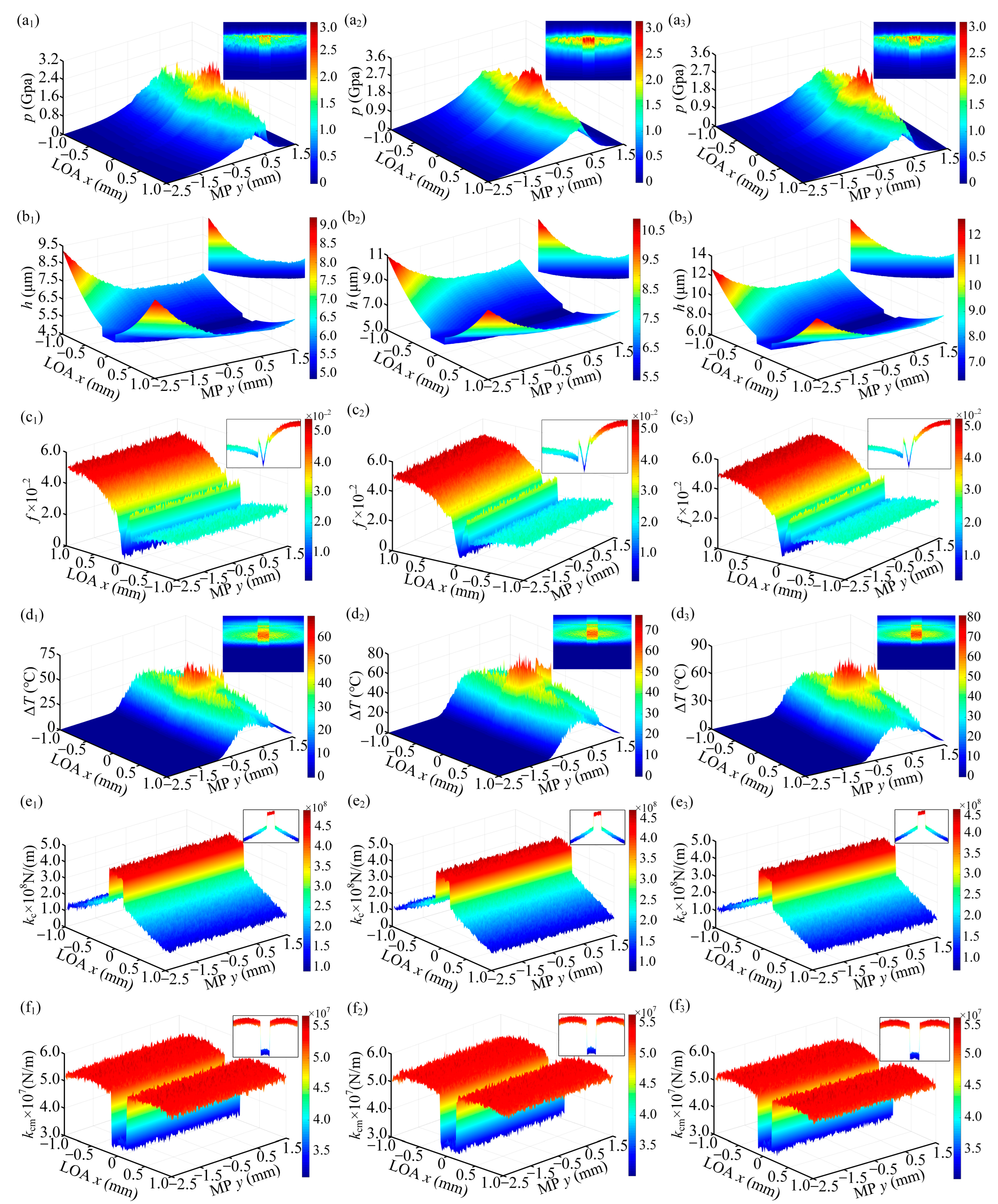 - Increasing T1 can increase the oil film pressure and friction coefficient, and reduce the film thickness. Moreover, the rough peak contact probability and fluctuation increase significantly, which indicates the lubrication state becomes poorer.