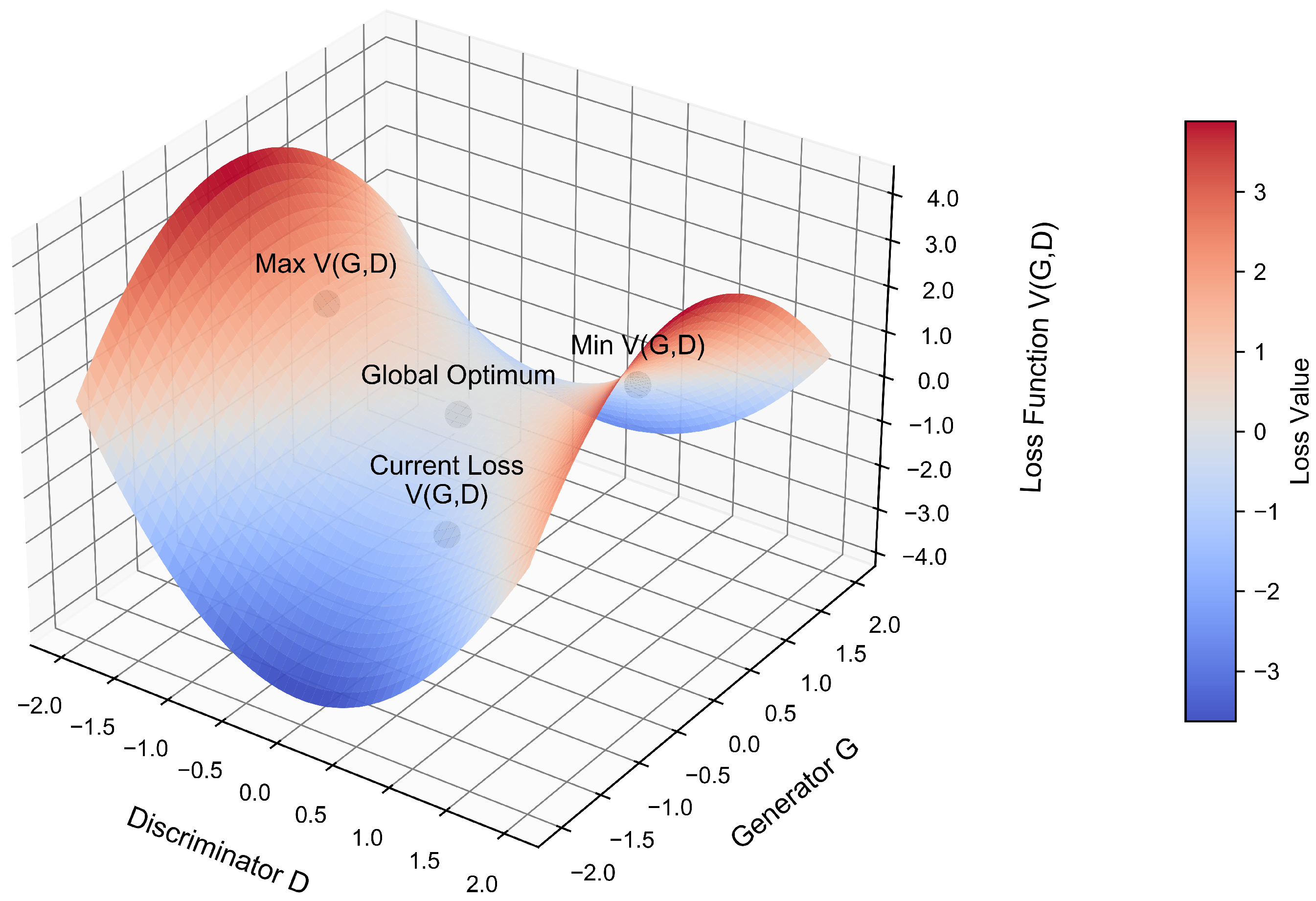- Current loss point : the loss value corresponding to the current parameter settings of the generator and discriminator in the given training iteration.