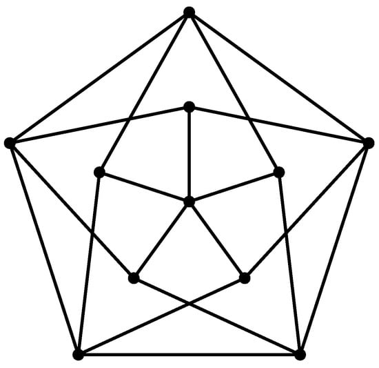 The clique number condition of Theorem 1 is tight, as a counterexample exists when . Indeed, the Mycielski–Grötzsch graph, illustrated in Figure 2, is -free, contains no homogeneous set, and satisfies . However, it does not admit a perfect division.