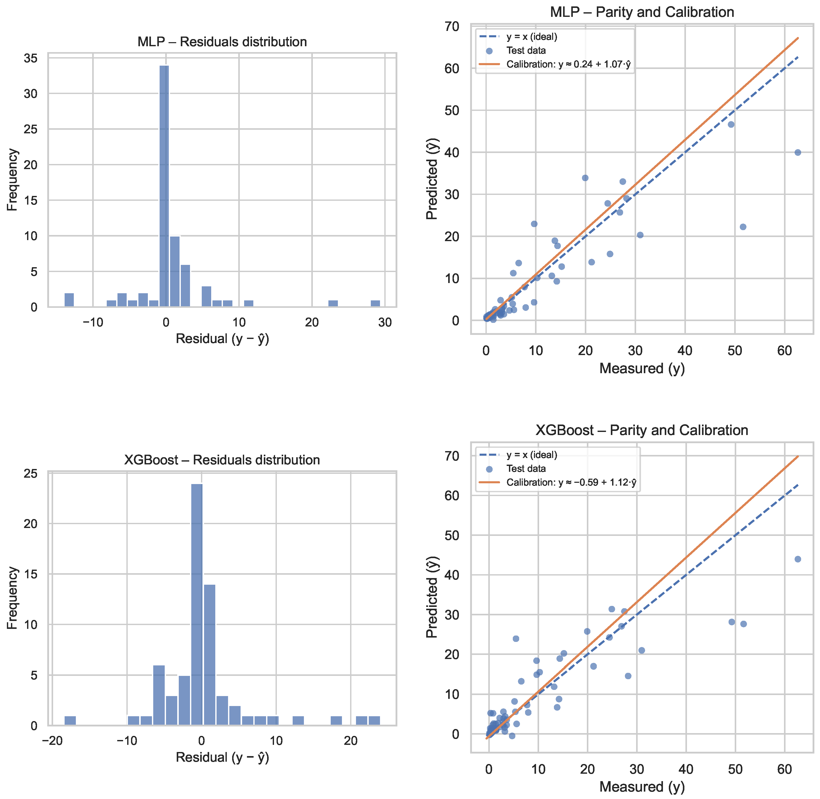 4.2. Calibration, Residuals, and Prediction Intervals