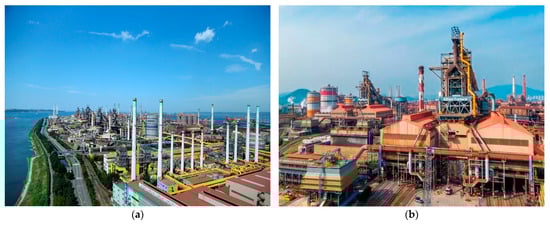 (a) Aerial view of Gwangyang Steelworks; (b) side view of Gwangyang Steelworks.
