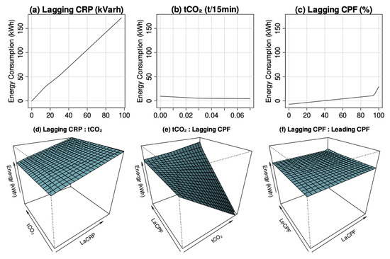 - Lagging reactive power (LaCRP) reflects inductive load dominance, where a poor power factor increases the apparent power demand and, thus, EC.