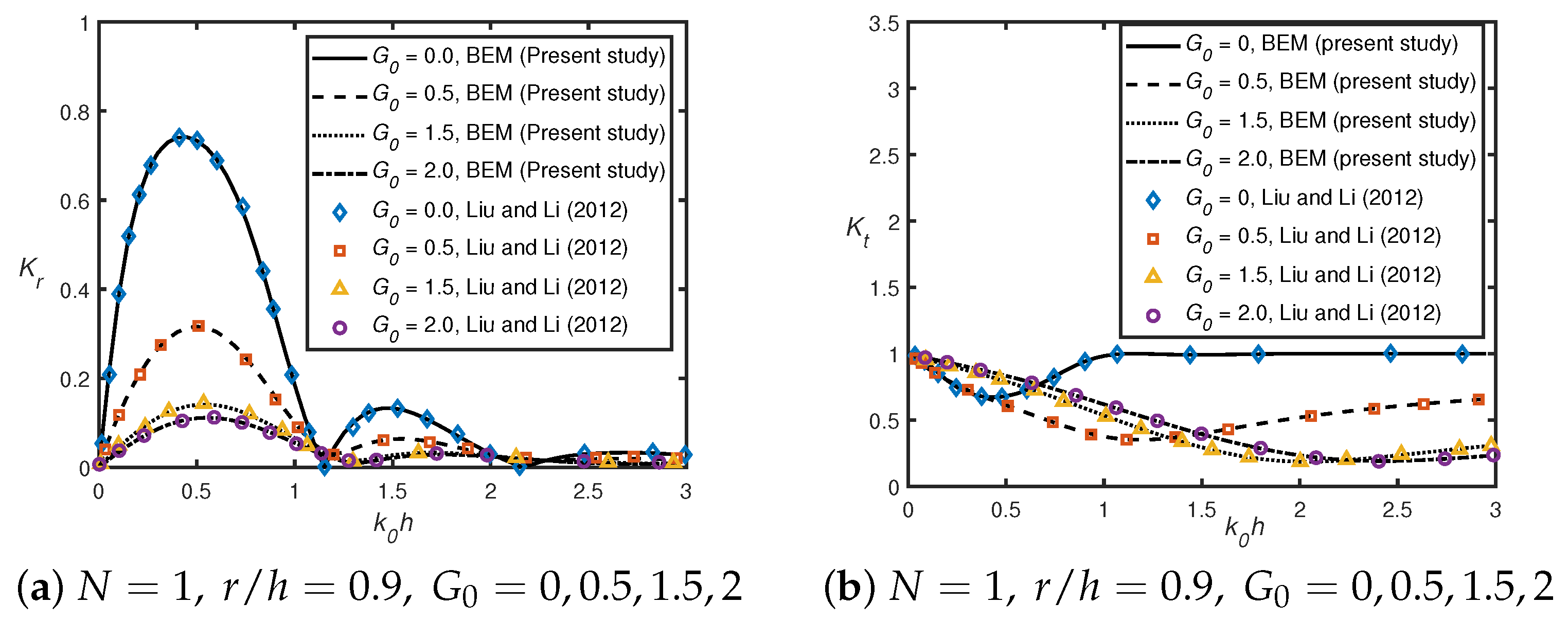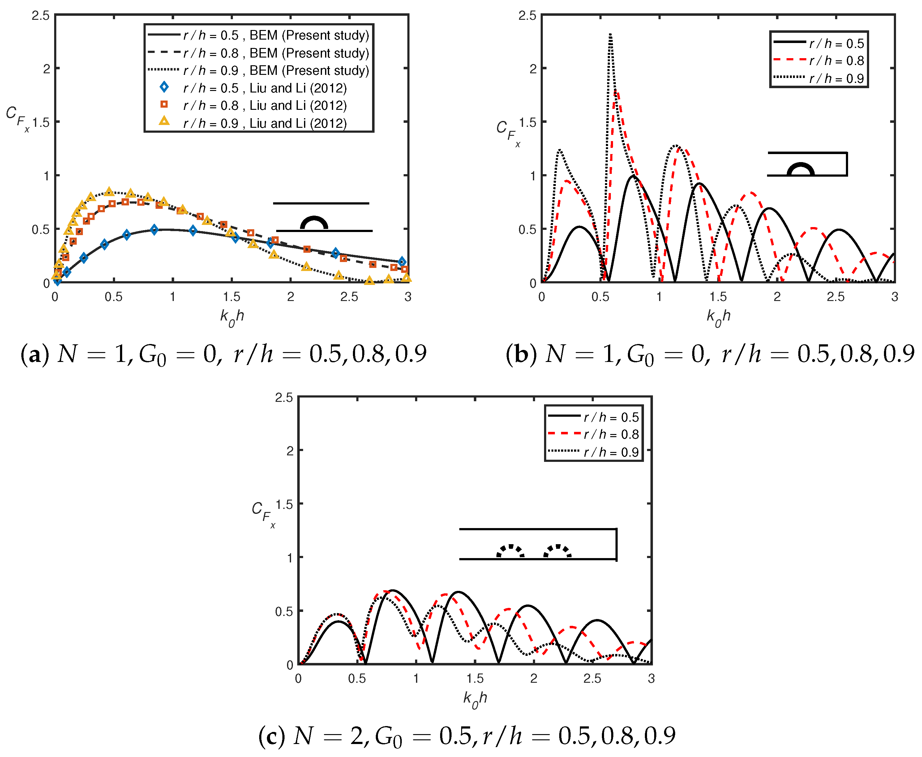 - Liu, Y.; Li, H.J. Analysis of wave interaction with submerged perforated semi-circular breakwaters through multipole method. Appl. Ocean Res. 2012, 34, 164–172. [Google Scholar] [CrossRef]