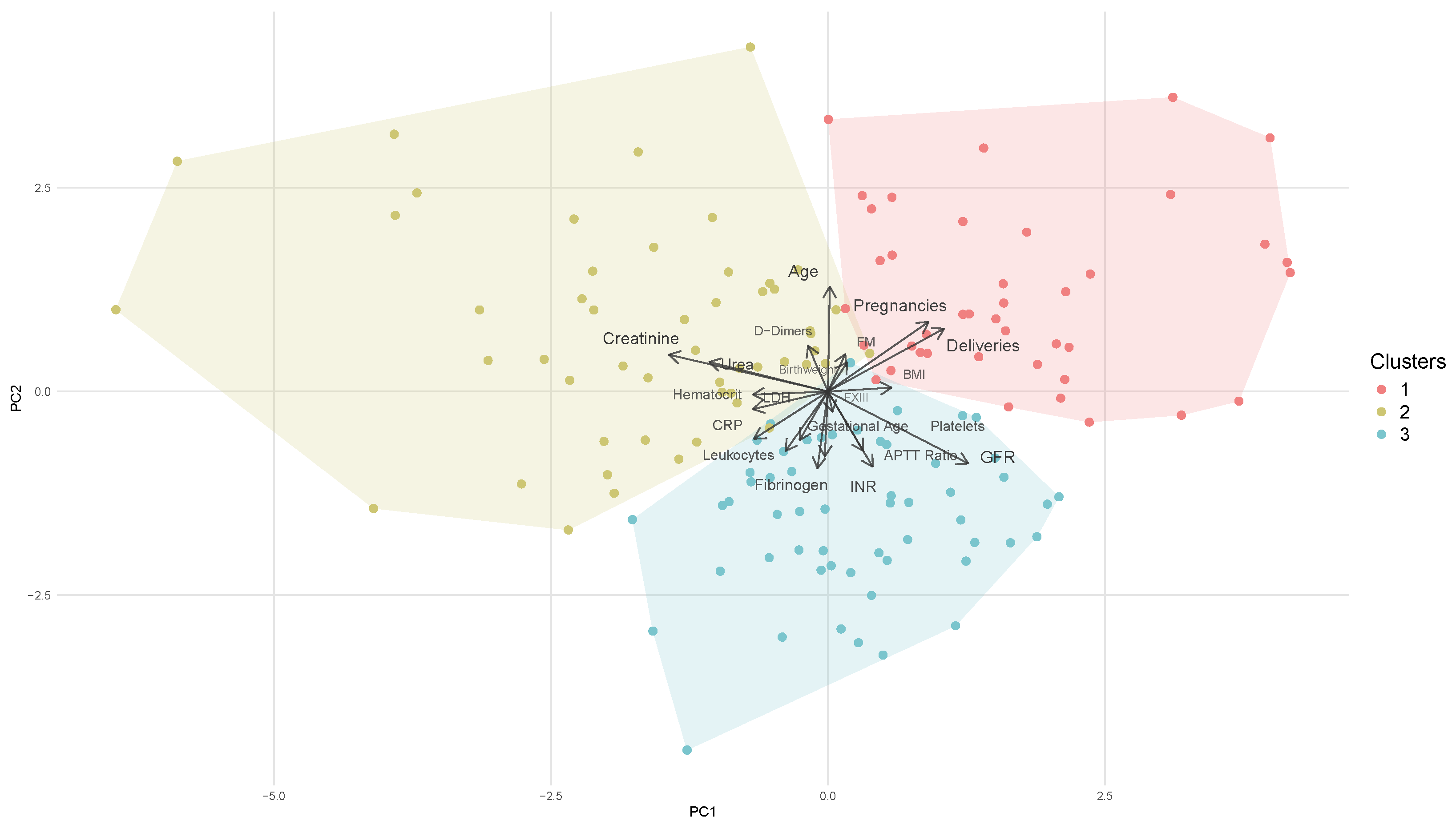 | Cluster | Gestational Age (Weeks) | Deliveries (n) | Leukocytes (n) | Birthweight (g) | |