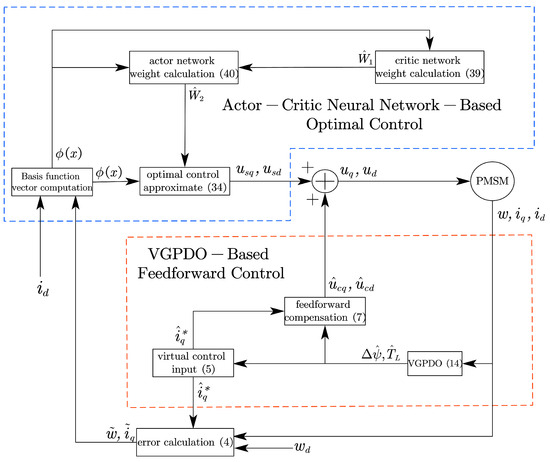 - To achieve optimality and robustness in PMSM speed regulation under varying load torque and flux linkage conditions, a robust optimal control strategy is proposed, which integrates feedforward-based VGPDO compensation with an actor-critic neural network-based optimal speed controller.