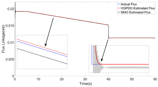 Flux linkage estimation results achieved by VGPDO and SMO.