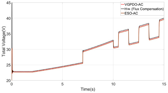 As summarized in Table 4, the proposed VGPDO-AC strategy achieves the highest steady-state accuracy and fastest dynamic response, as evidenced by its smallest steady-state error (0.01217%), shortest settling time (0.0676 s), and minimum RMSE (27.3861) among all control strategies. Furthermore, it maintains lower power consumption ( J) than the contemporary H-infinity control ( J). Although its energy consumption is slightly higher than that of the ESO-AC strategy, the VGPDO-AC demonstrates notable overall control performance, positioning it as a high-performance and energy-efficient control solution.