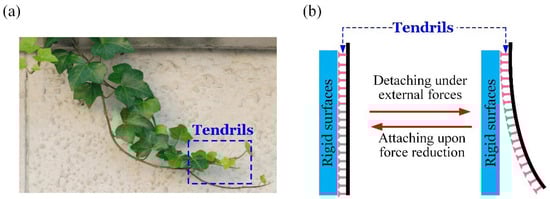 Switchable adhesion between tendrils and rigid surfaces. (a) Climbing plants with tendrils. (b) Switchable adhesion.