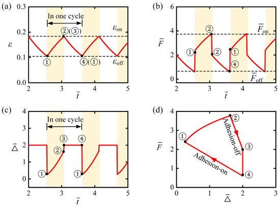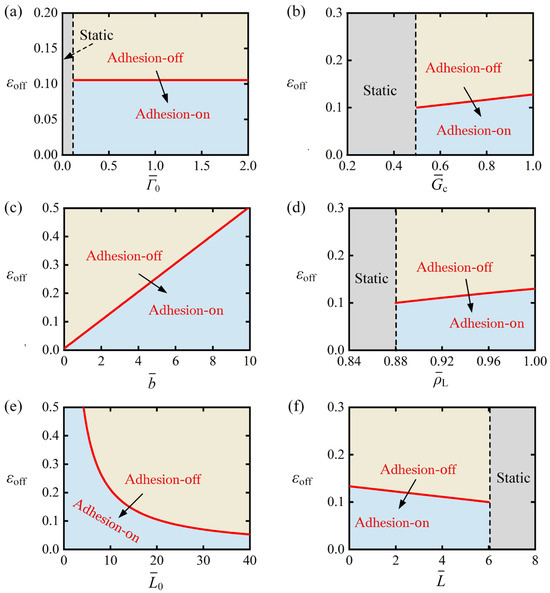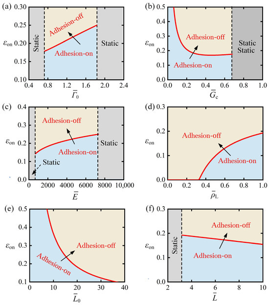 From Equations (19) and (21), the critical photothermal contraction of adhesion-on and adhesion-off are expressed as: