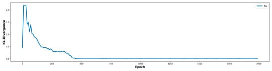 To assess training convergence, the problem is formulated as a divergence minimization task. Given the real distribution and the generator-induced distribution , the class-conditional KL divergence [26,33,41] is evaluated under structured feature constraints , ensuring that generated samples remain statistically aligned with their real counterparts