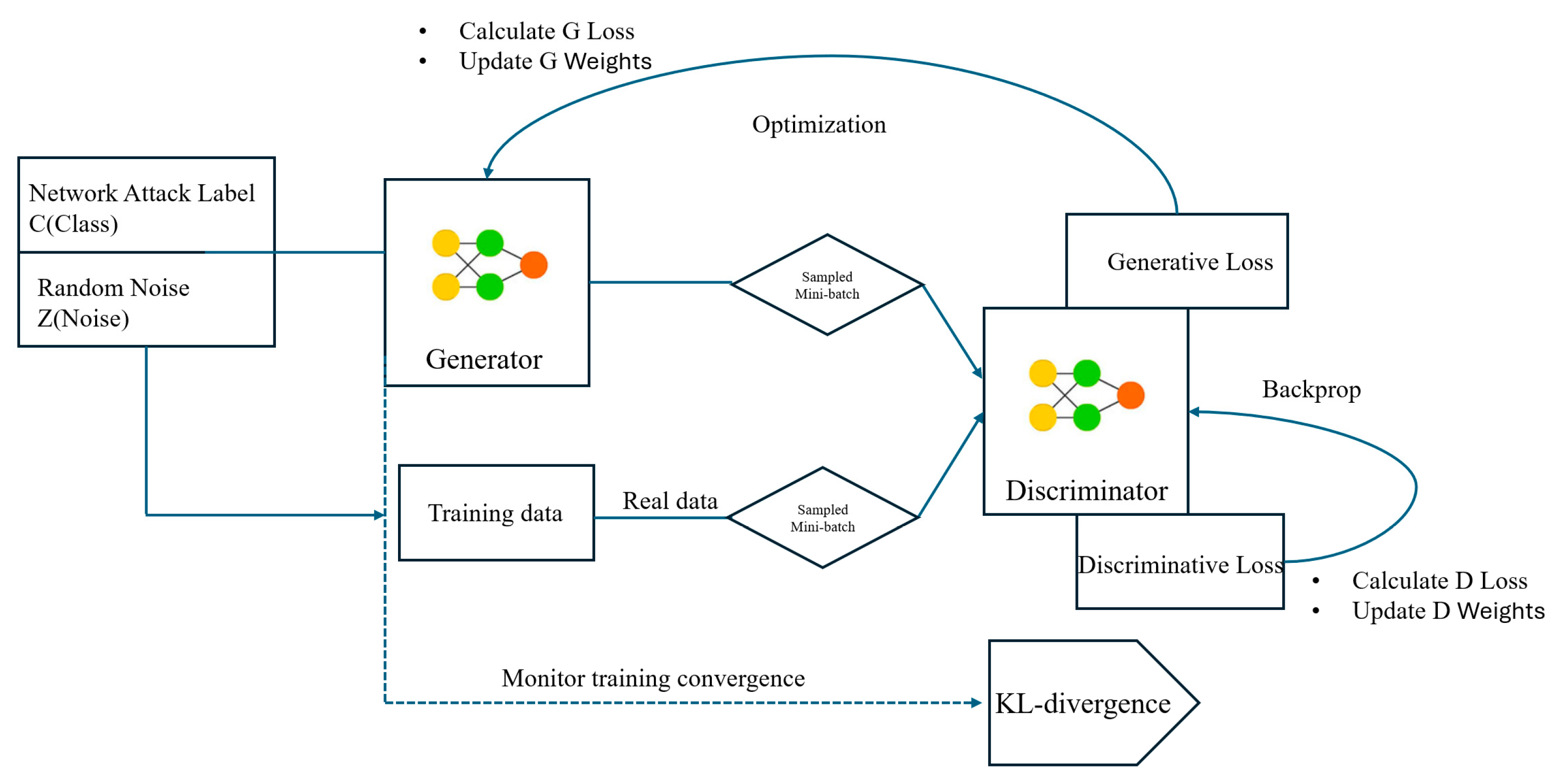 - Klinkhamhom, C.; Wuttidittachotti, P.; Boonyopakorn, P. Comparative Evaluation of GAN, CGAN, and ACGAN for Intrusion Detection in Cybersecurity. In Proceedings of the 2025 International Technical Conference on Circuits/Systems, Computers, and Communications (ITC-CSCC), Seoul, Republic of Korea, 7–10 July 2025; pp. 1–4. [Google Scholar] [CrossRef]