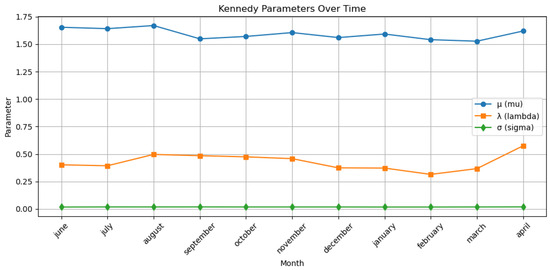 Furthermore, the temporal evolution of the calibrated parameters is presented in Figure 8. These plots provide insight into how the forward curve’s volatility structure and mean reversion characteristics have changed over time, potentially reflecting macroeconomic developments or shifts in market sentiment.