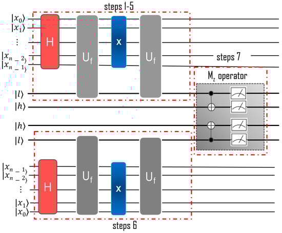 - Grover, L.K. Quantum Mechanics Helps in Searching for a Needle in a Haystack. Phys. Rev. Lett. 1997, 79, 325. [Google Scholar] [CrossRef]