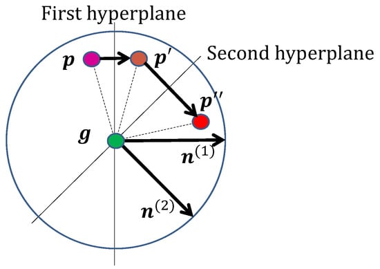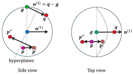 10)); thus, it is in the plane defined by the two combined points and the origin of the embedding space. Projection transformation