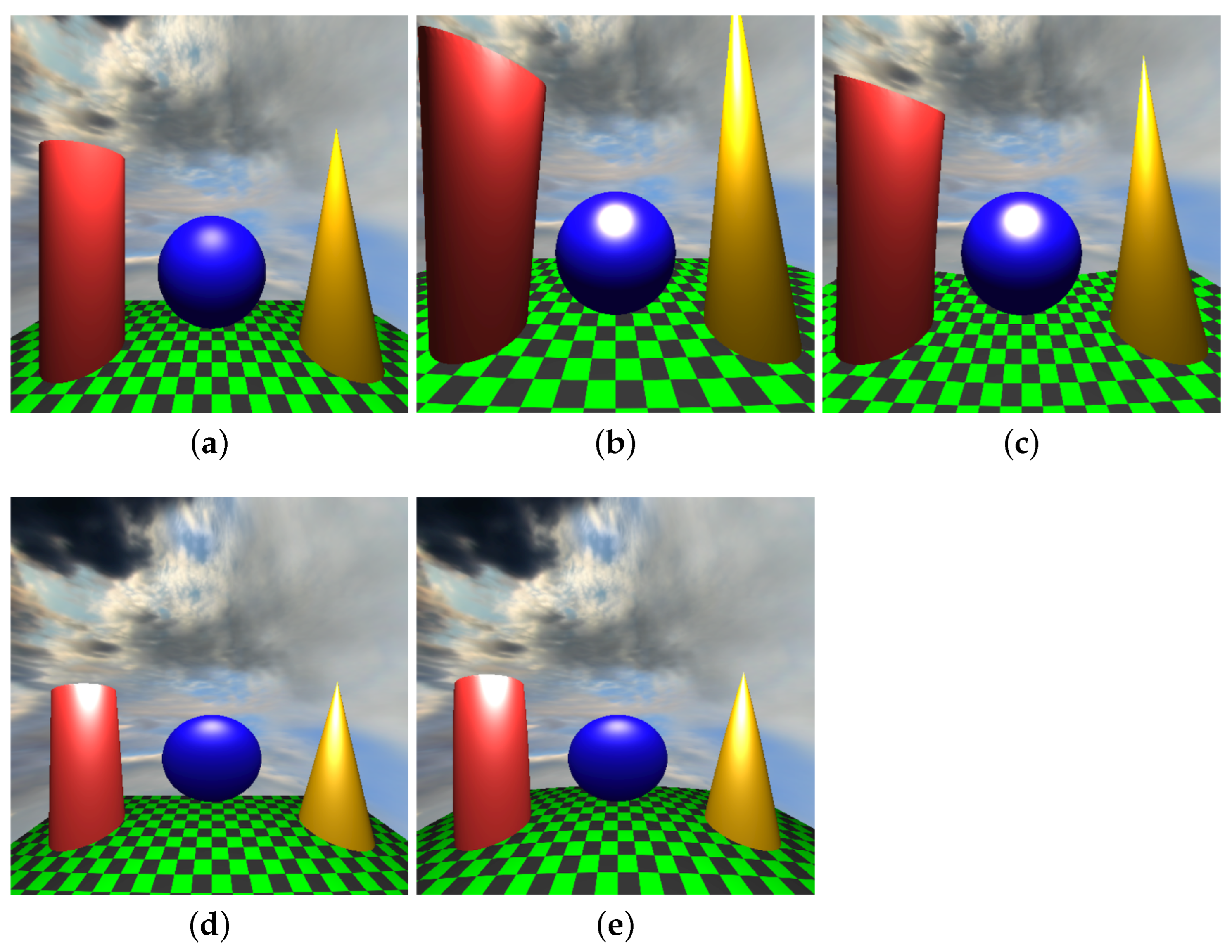 26). When objects are transformed, the normal vectors are also updated. During illumination computation, we applied the diffuse-specular Phong–Blinn model depending on the transformed normal, illumination, and viewing directions. The unit viewing direction
