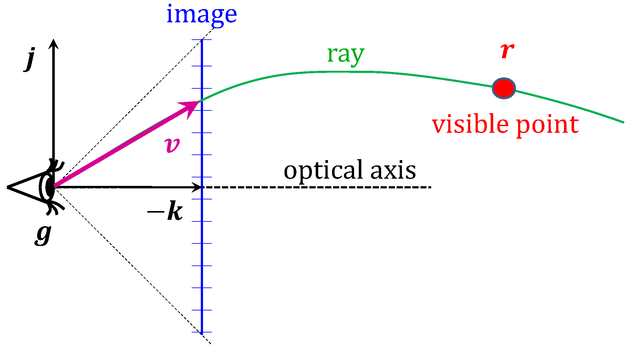 Rendering in curved spaces poses further challenges. Since light follows geodesics, visibility computations in ray tracing must generalize intersection tests to geodesic paths [