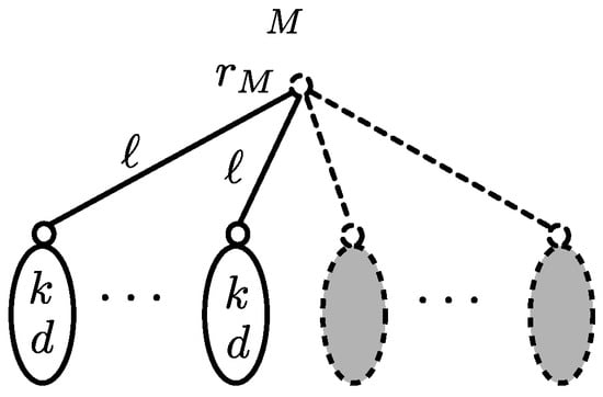 That is, denotes the set of mutually non-isomorphic rooted tree-like multigraphs with n vertices and multiple edges, where k, d, and ℓ are upper bounds on the maximum number of vertices in the descendant subgraphs, , and , respectively. Note that according to the definition of , it follows that