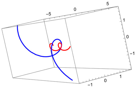 Case 2: Now, assume that is a null Cartan helix, so its torsion is , where c is a non-zero real constant. Then, for the ruled surface , generated by to be a solution of the Da Rios vortex filament equation, the curve must again be either a null Cartan cubic or a null Cartan helix. The proof follows similarly to Case 1, and thus the second part of Theorem 4 is proven. □