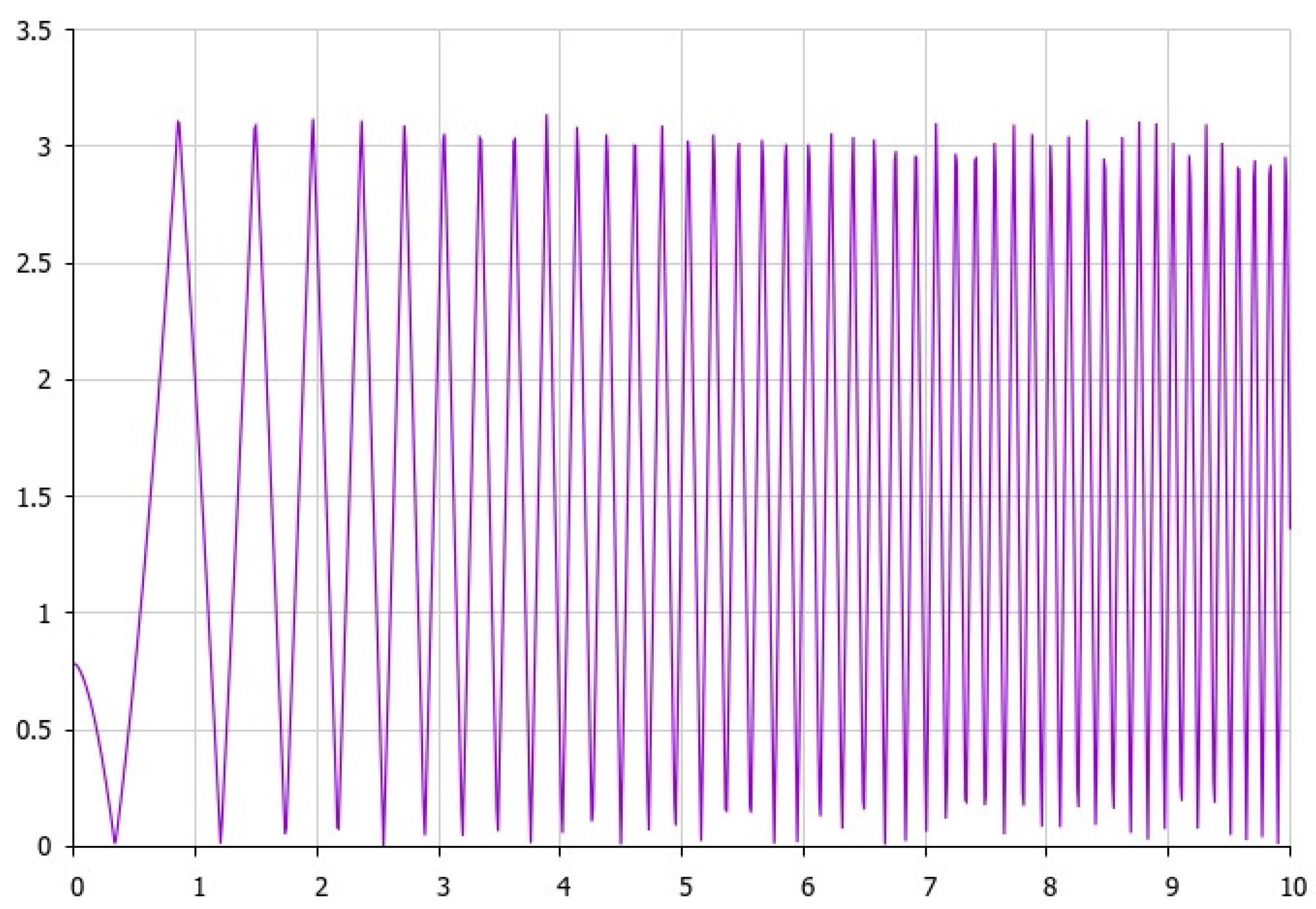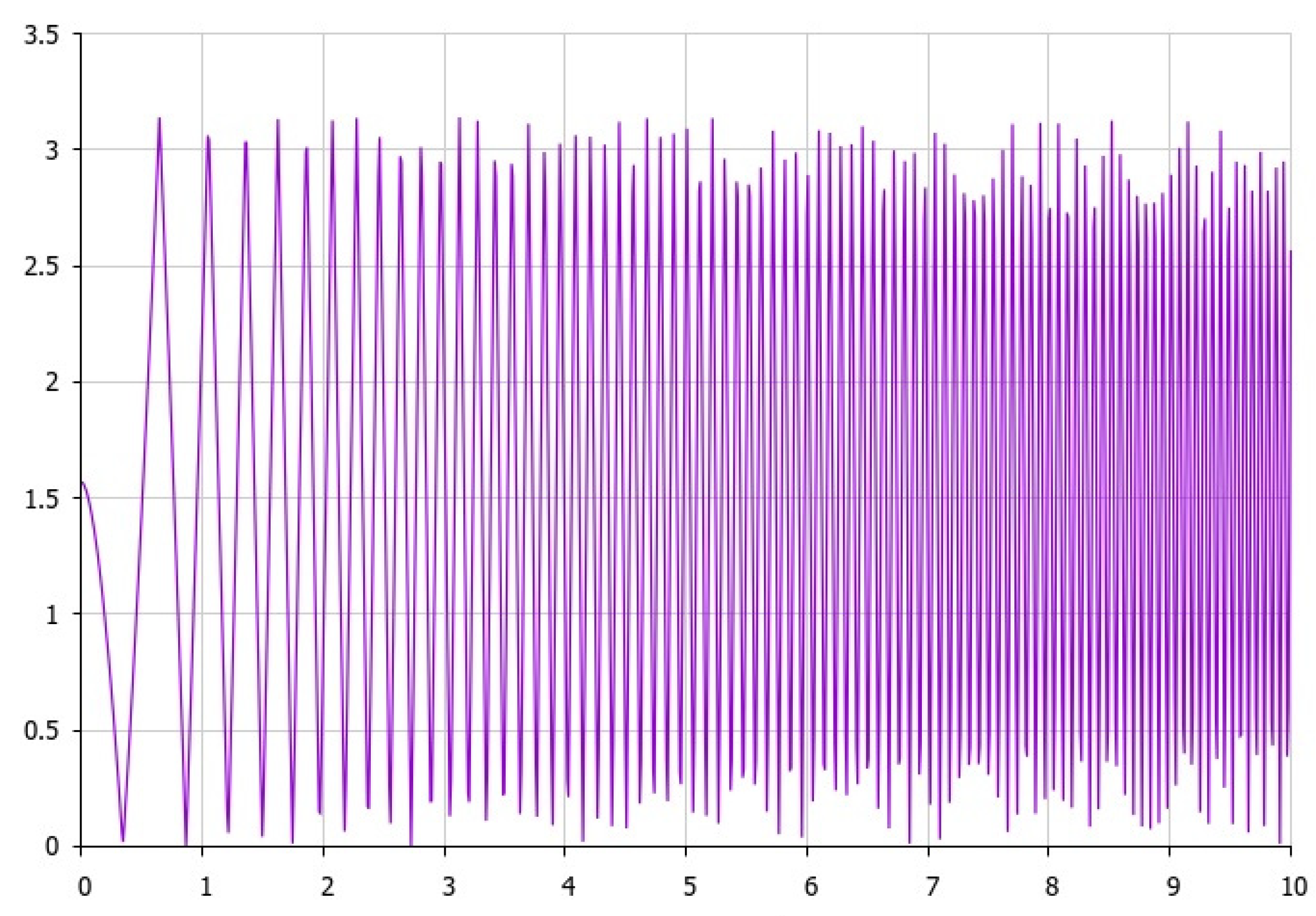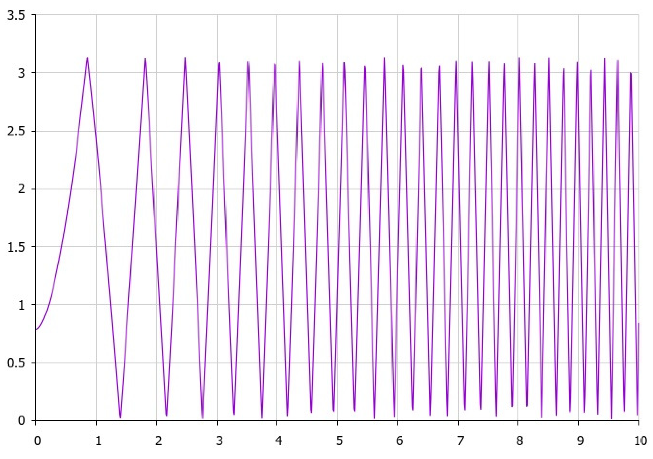 Figure 1. Schematic approximation of the dynamics of angle θ according to (14) (the vertical axis), with time t depicted on the horizontal axis.